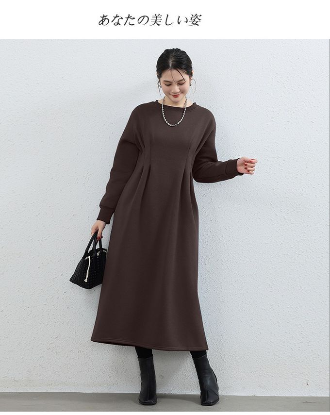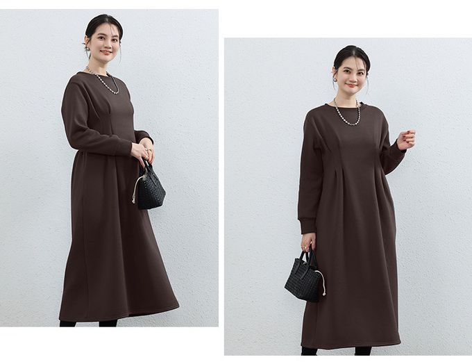 • 品名:(內裡加絨)休閒感抓褶修身剪裁長袖洋裝