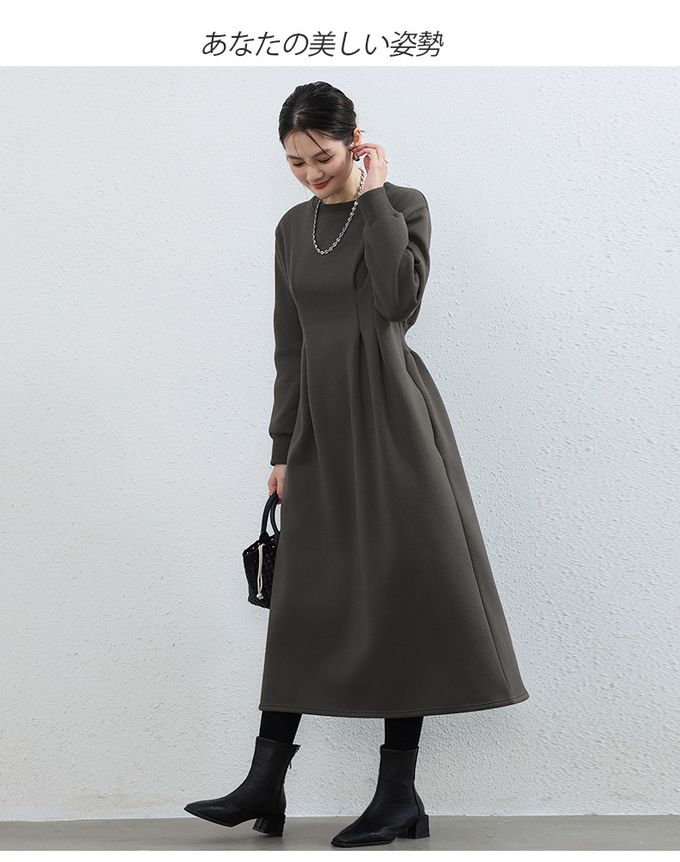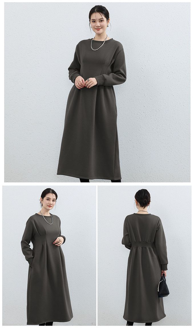 • 品名:(內裡加絨)休閒感抓褶修身剪裁長袖洋裝