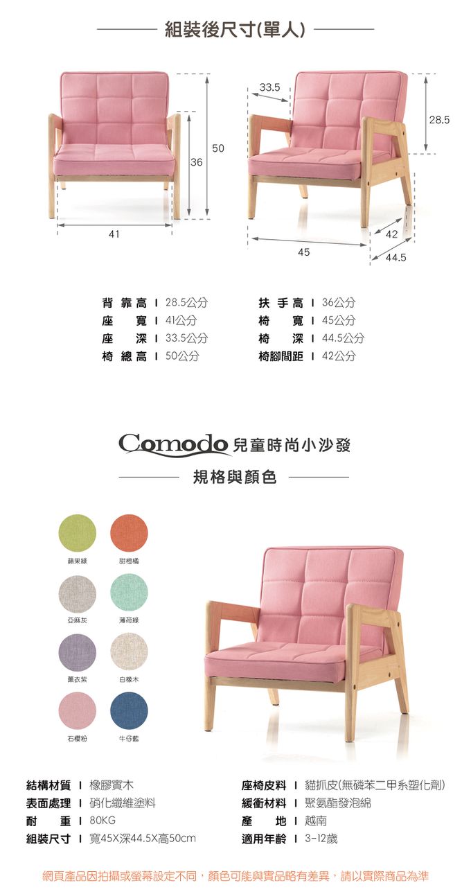 Comodo兒童時尚小沙發( 單人 )-石櫻粉