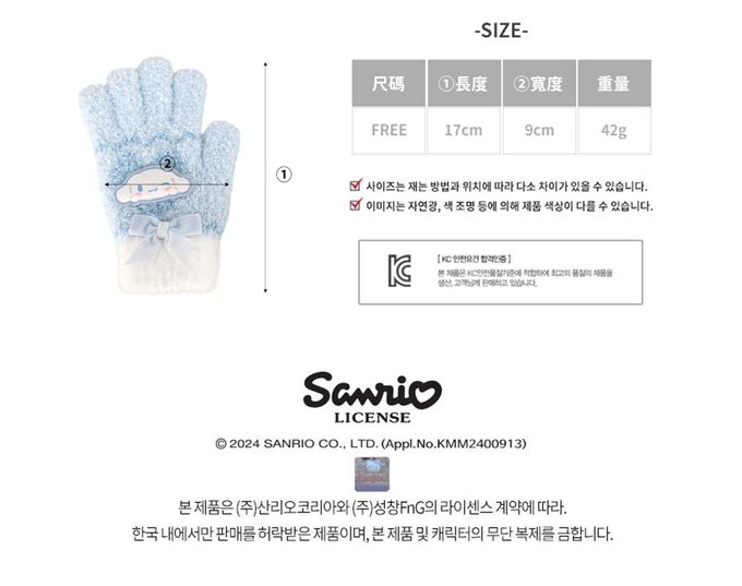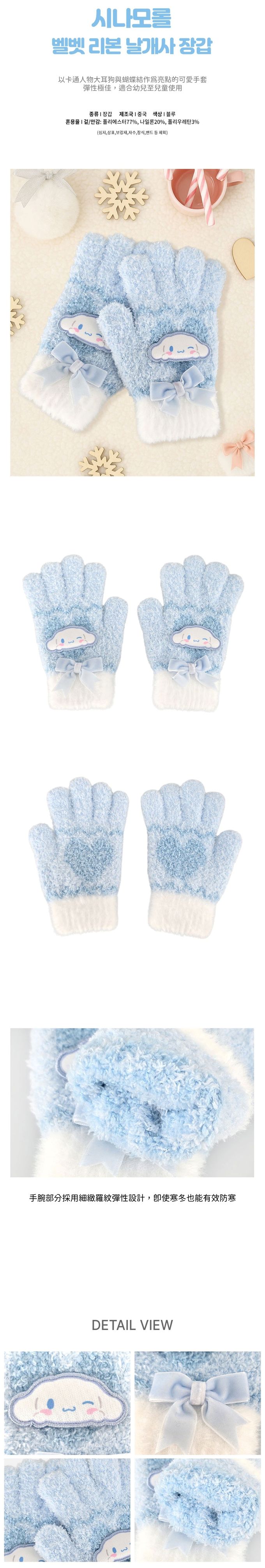 韓國配件連線 - 保暖毛絨造型手套-卡通人物大耳狗-天藍