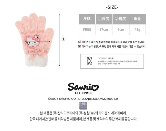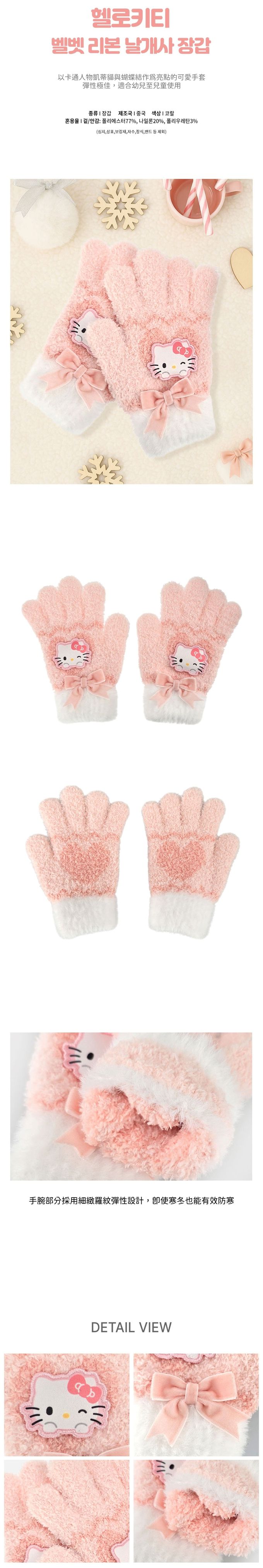 韓國配件連線 - 保暖毛絨造型手套-卡通人物凱蒂貓-粉橘