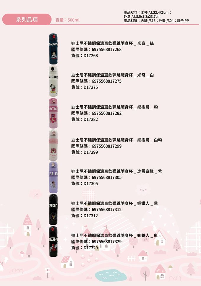 • 品名:正版授權不鏽鋼保溫 悠活杯系列 直飲 彈跳隨身杯 500ml - 熊抱哥_粉