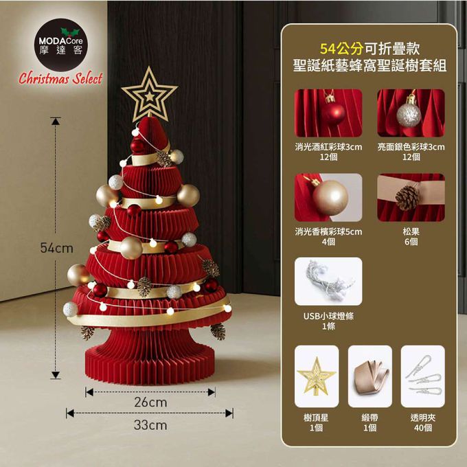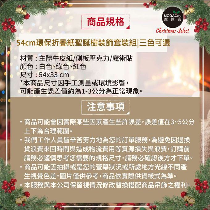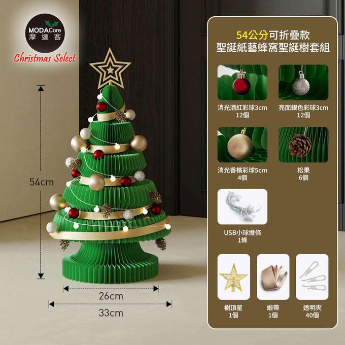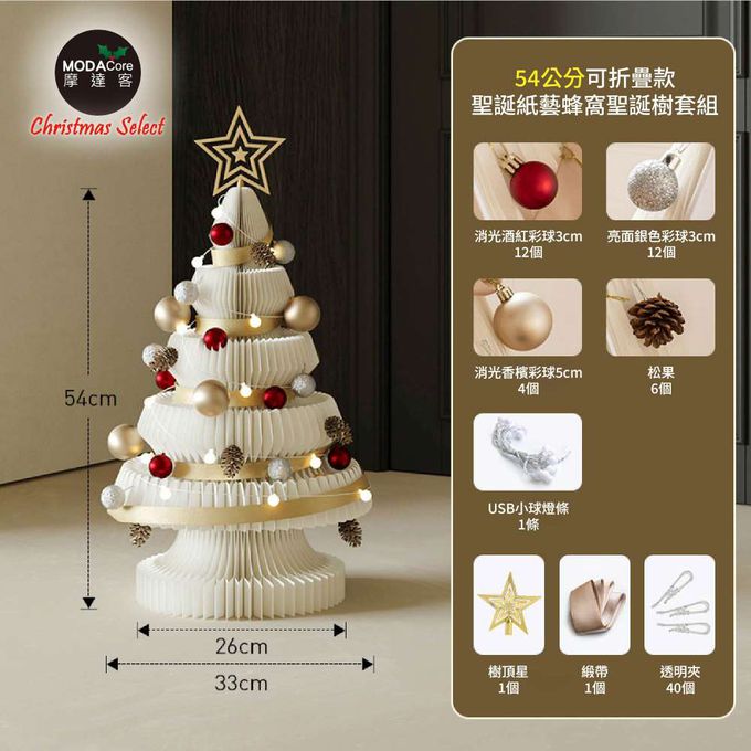品名:十八紙54cm環保折疊紙聖誕樹裝飾套裝組合-三色可選-人氣質感耶誕派對佈置