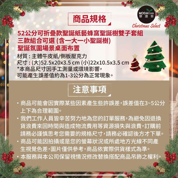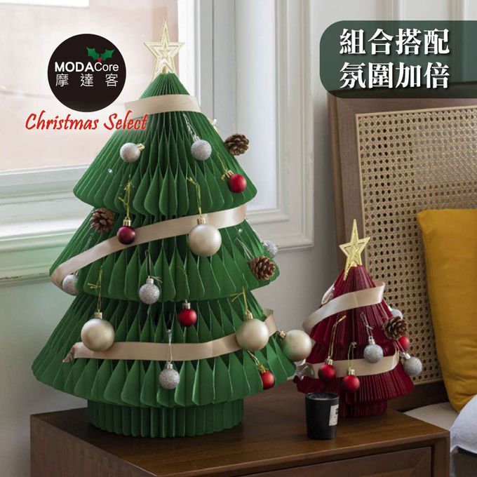 品名:十八紙環保折疊聖誕樹雙子裝飾套組_三款可選_含一大一小聖誕樹套組+含裝飾品