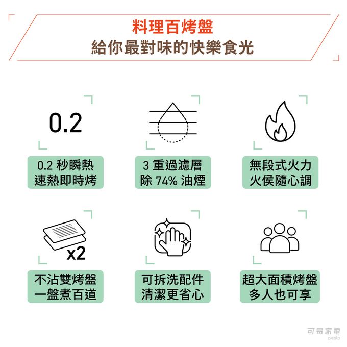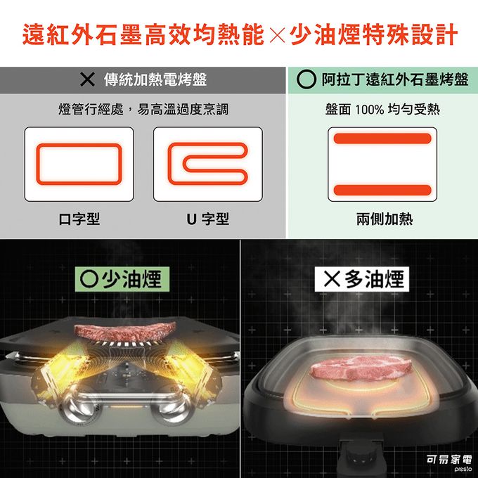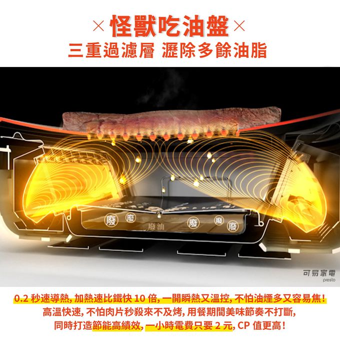 「 0.2 秒瞬熱 X 縮減 74% 油煙 X 不沾豪華雙烤盤」