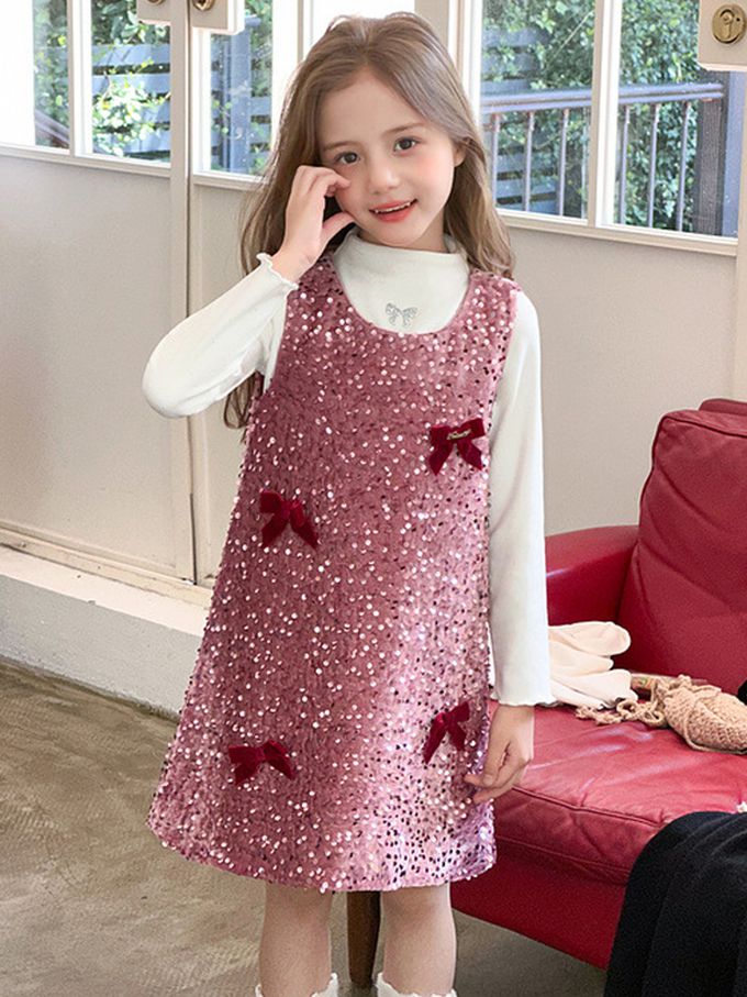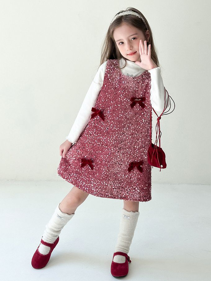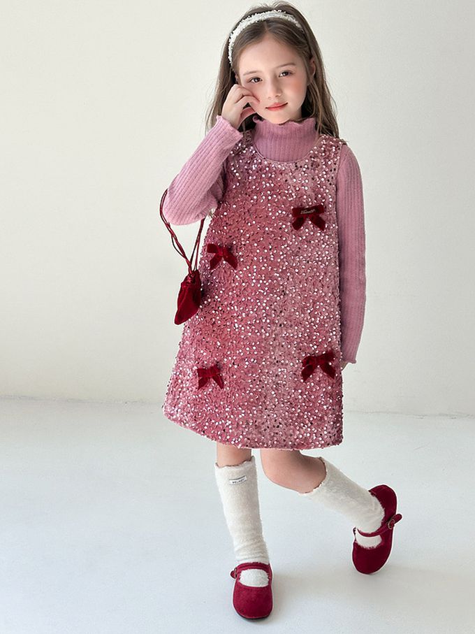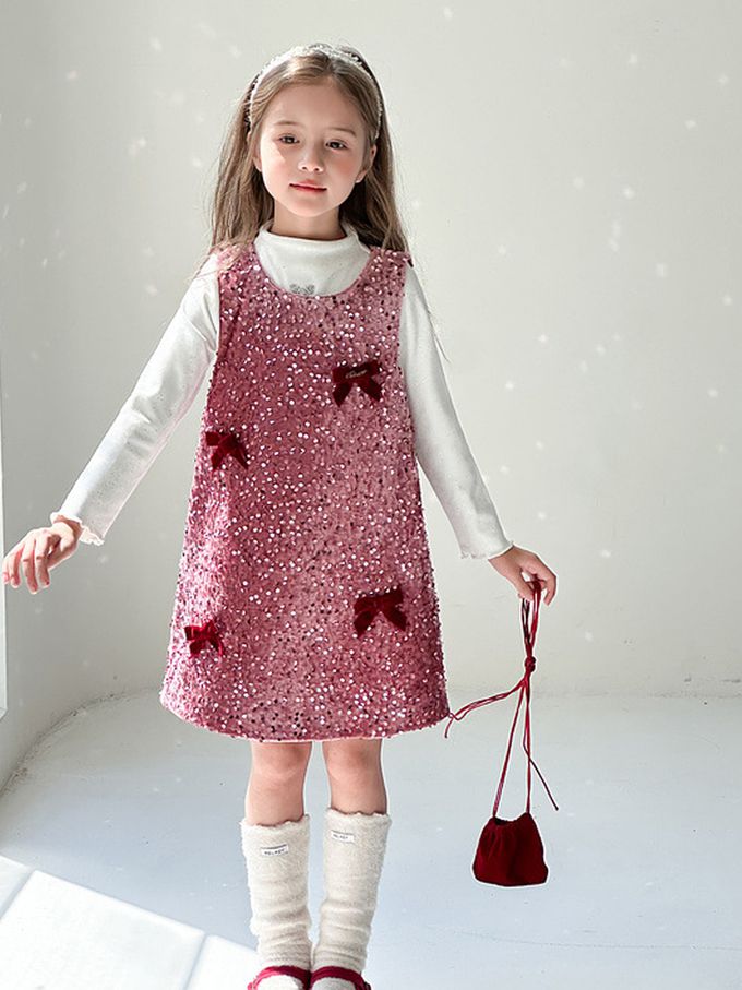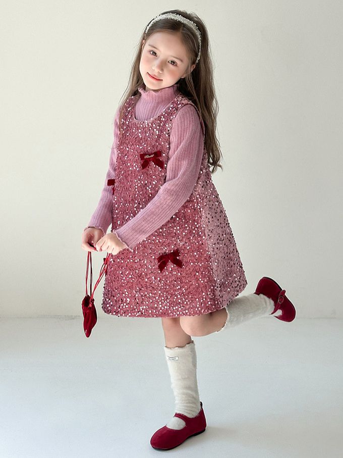 自帶光芒千金感鋪棉背心裙(不含內搭長袖)-絲絨蝴蝶結-粉紫