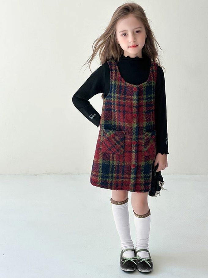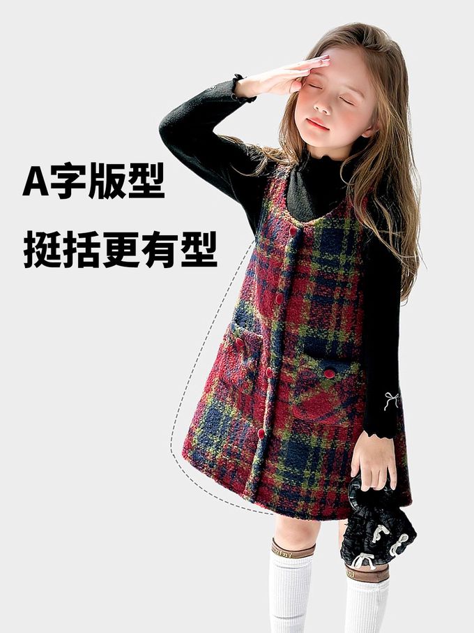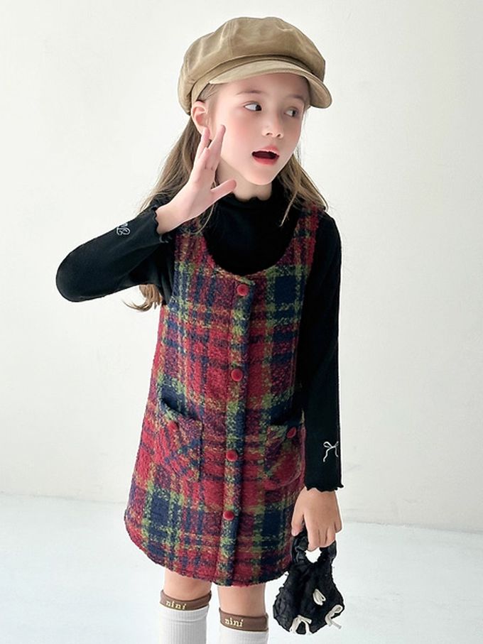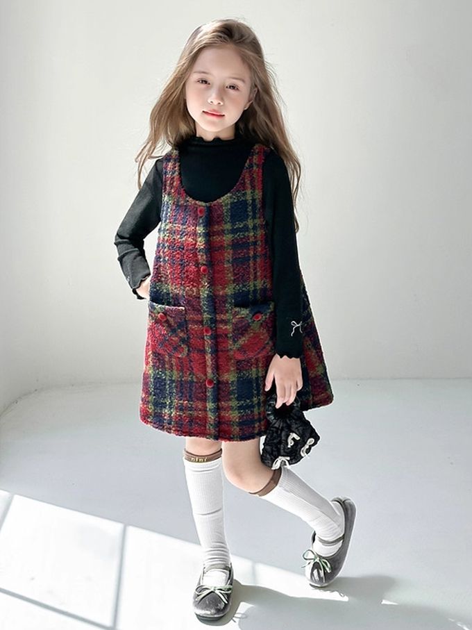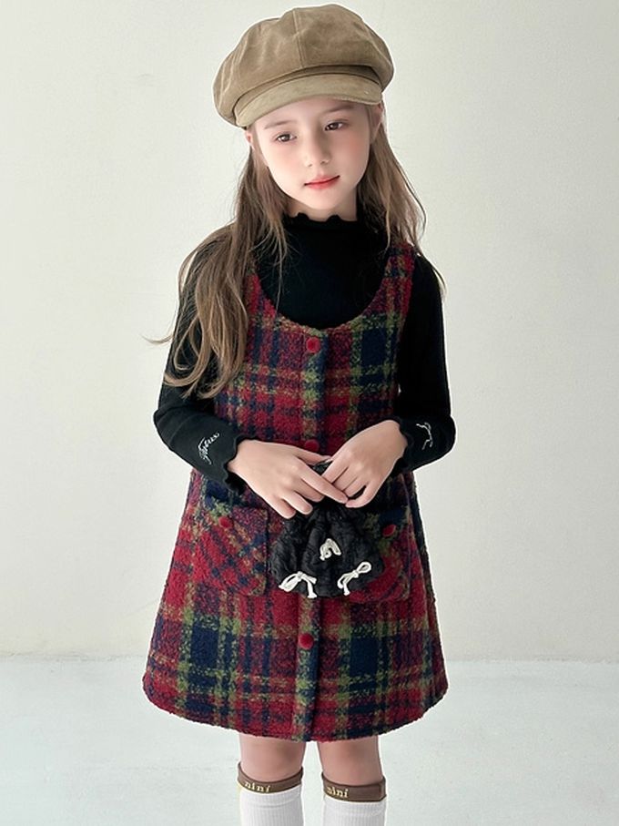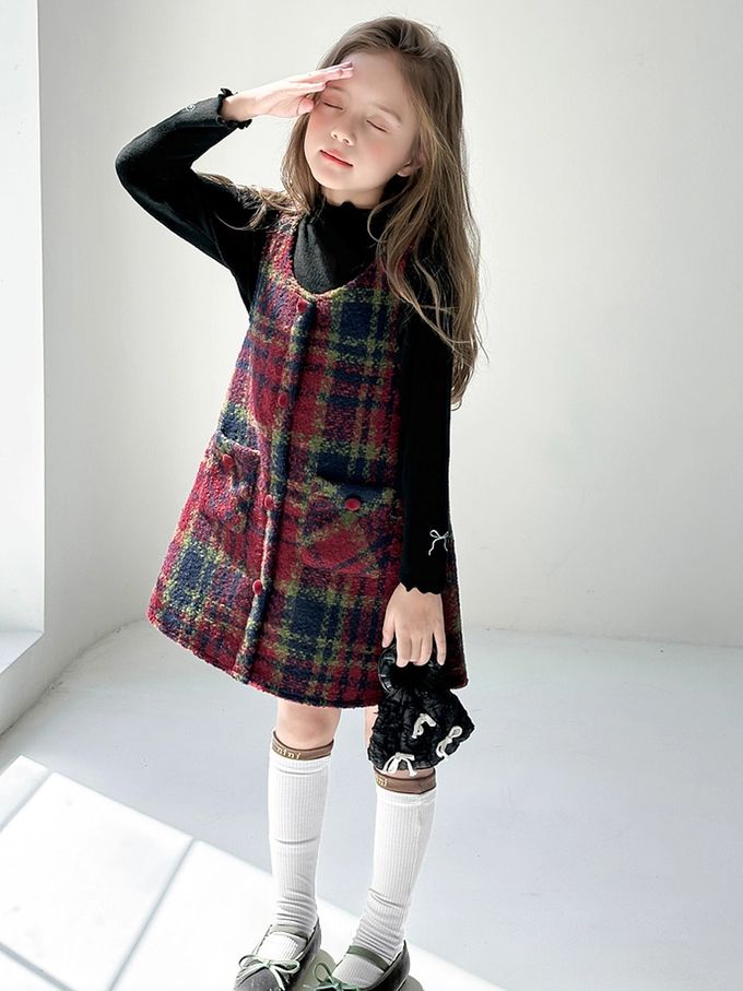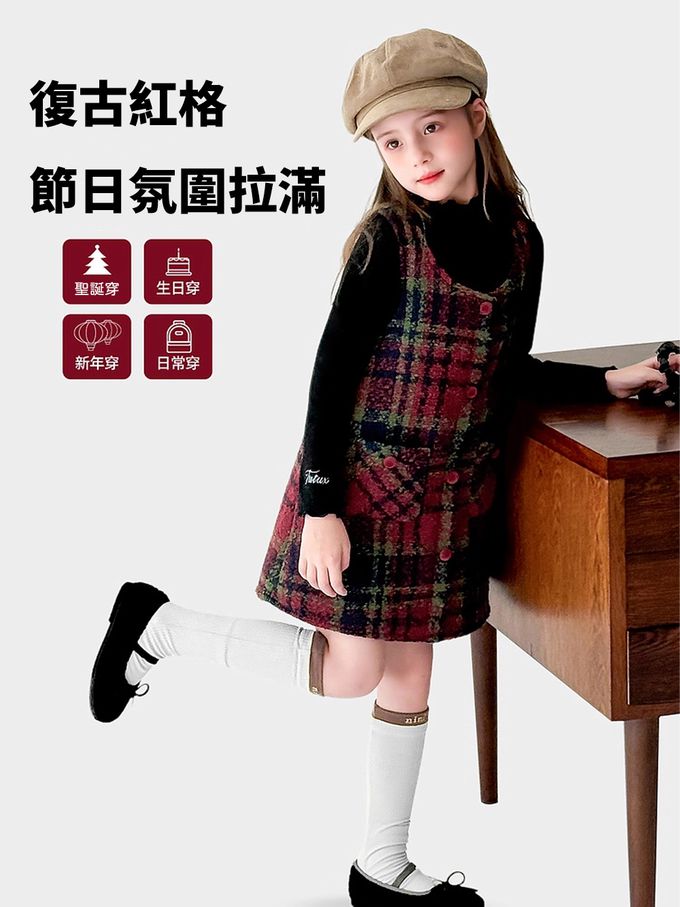 品名:復古紅格羊毛背心裙(不含內搭長袖)