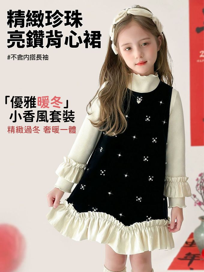品名:精緻珍珠亮鑽背心裙(不含內搭長袖)