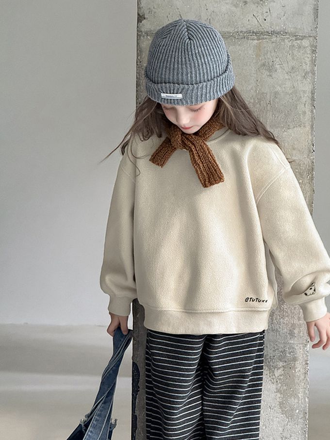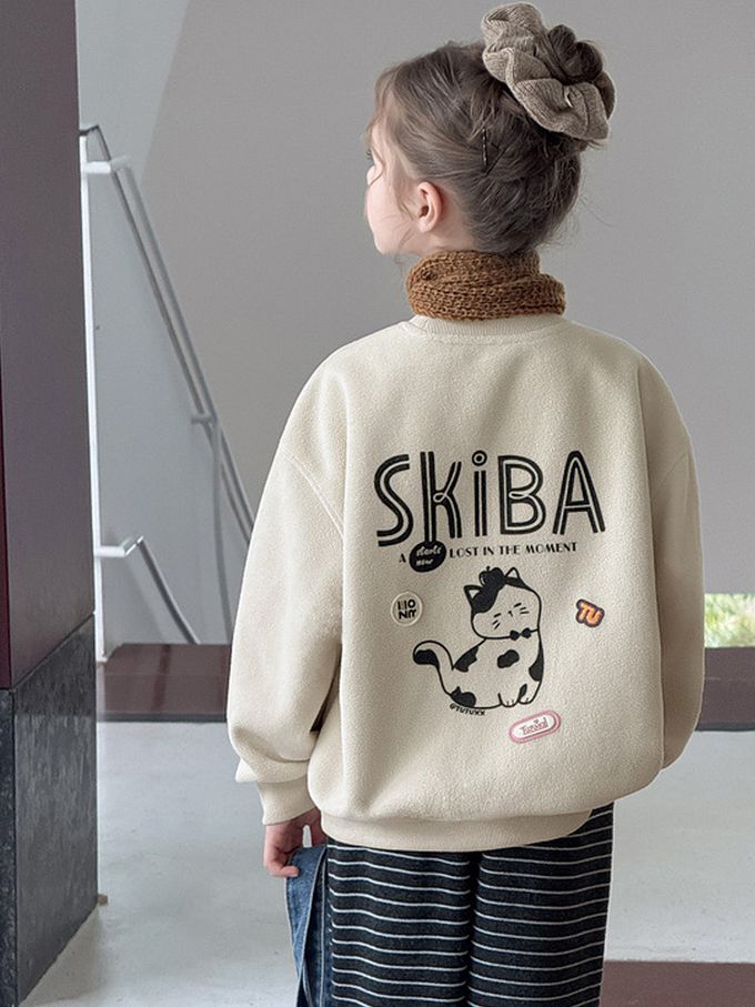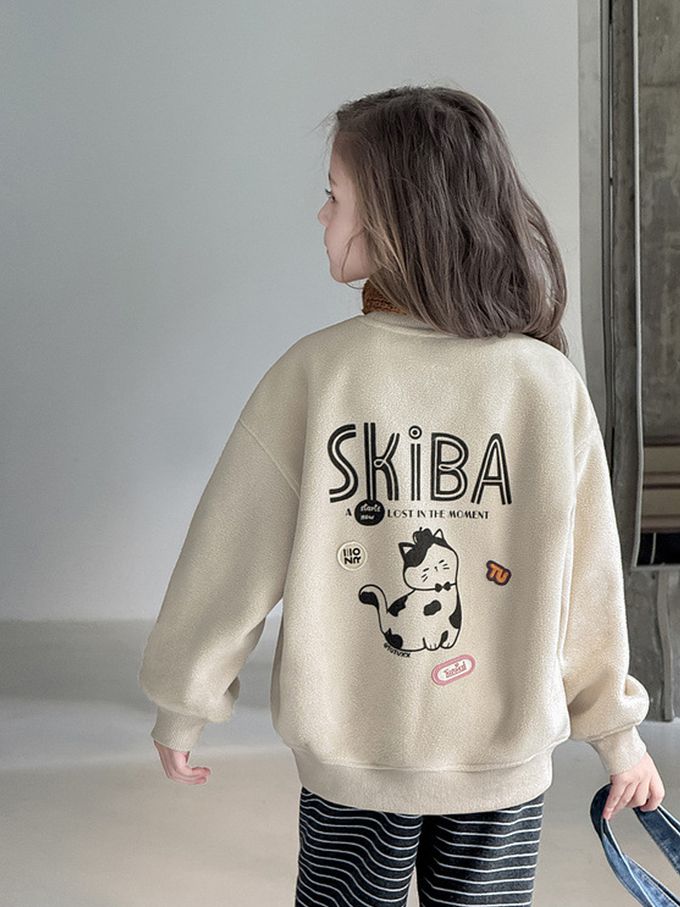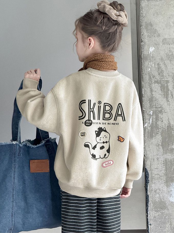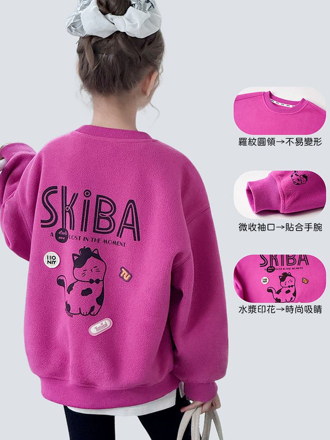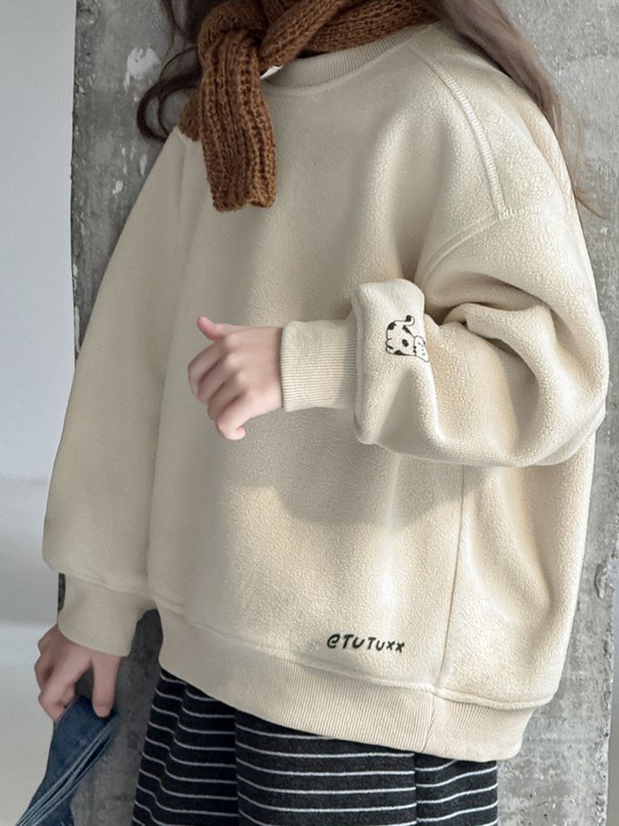 抗靜電暖暖絨長袖上衣-可愛貓咪-杏色