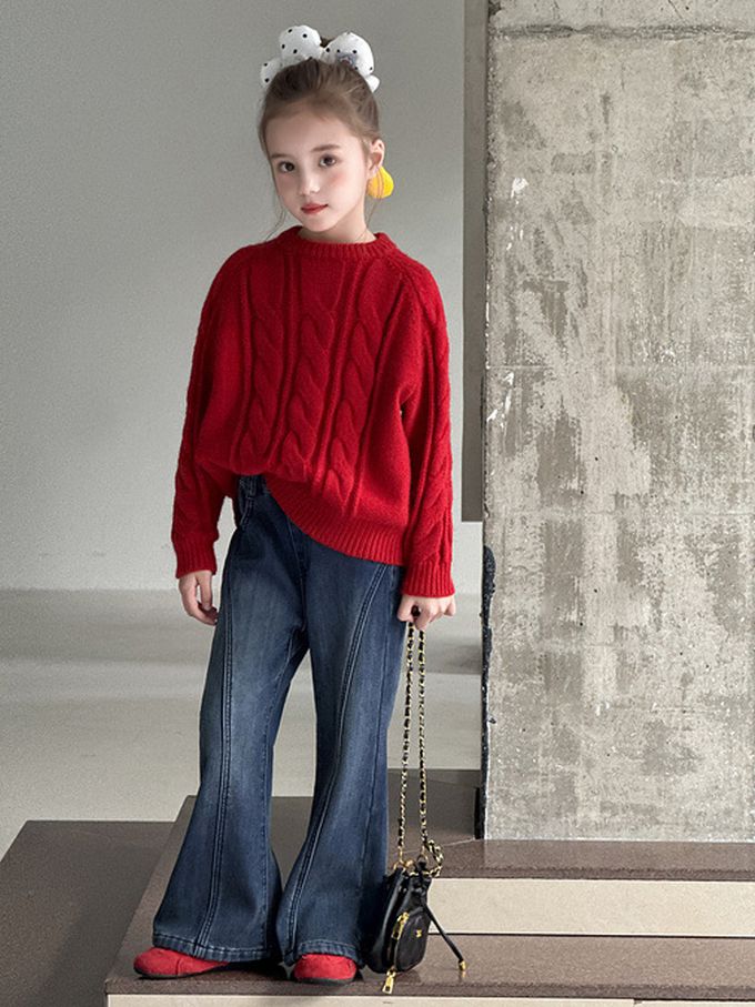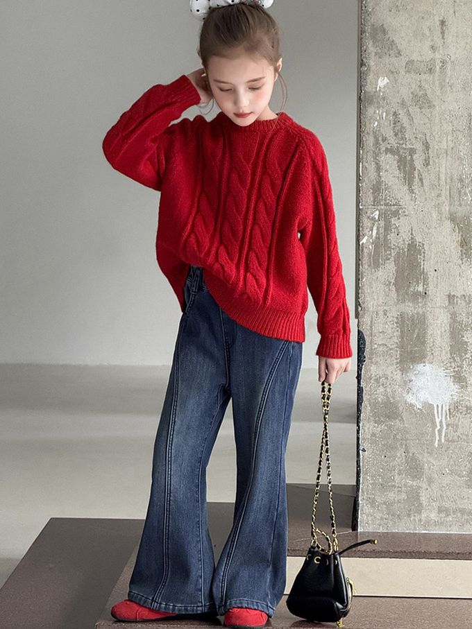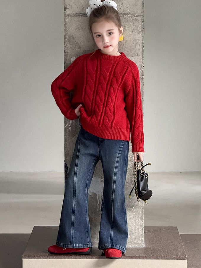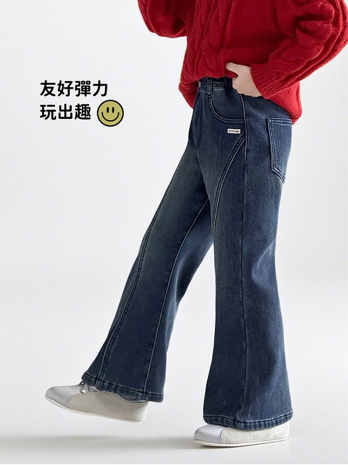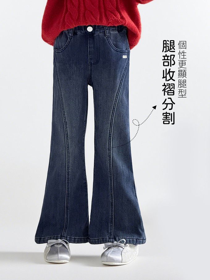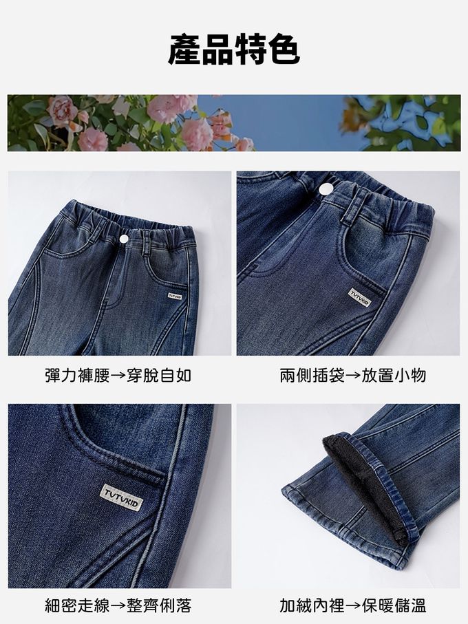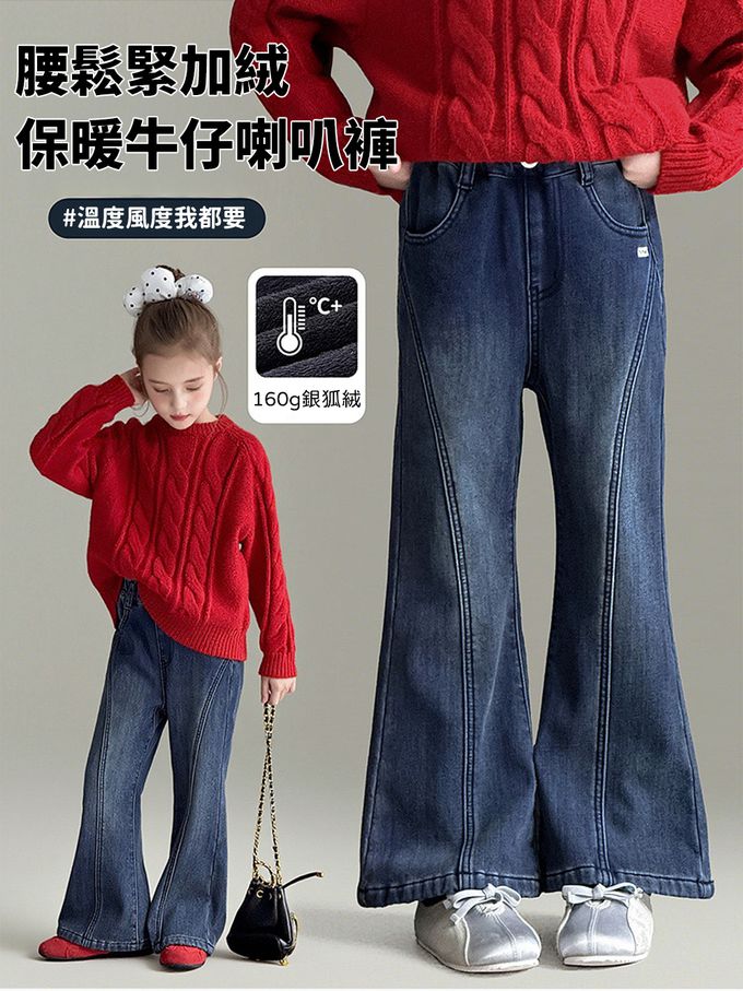 品名:腰鬆緊加絨保暖牛仔喇叭褲