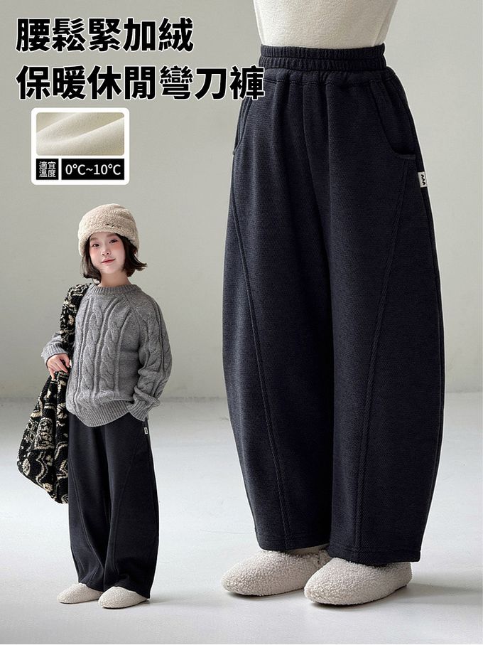 品名:腰鬆緊加絨保暖休閒彎刀褲