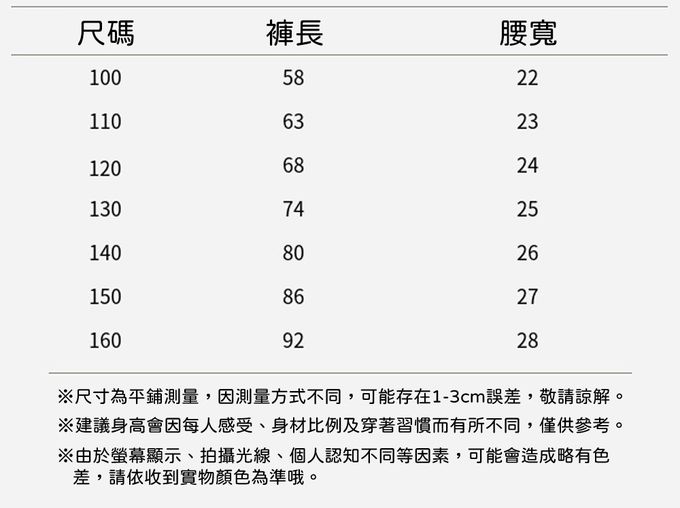 100cm、110cm、120cm、130cm、140cm、150cm、160cm