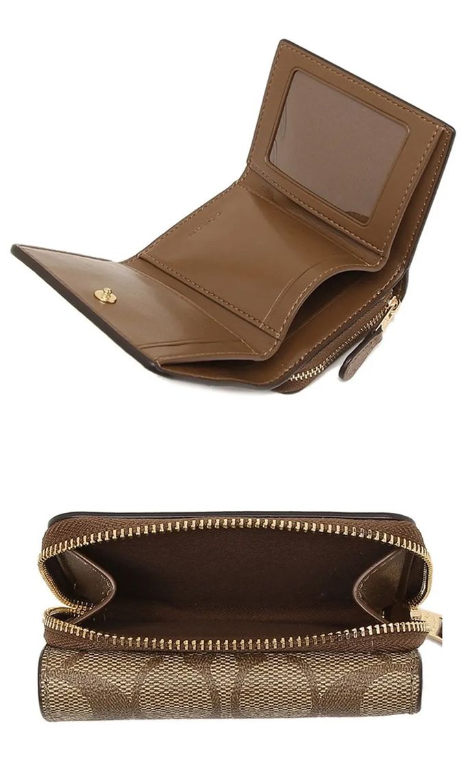 拼接皮革拉鍊零錢短夾 (卡其駝)