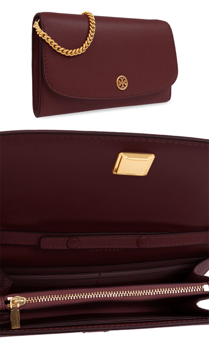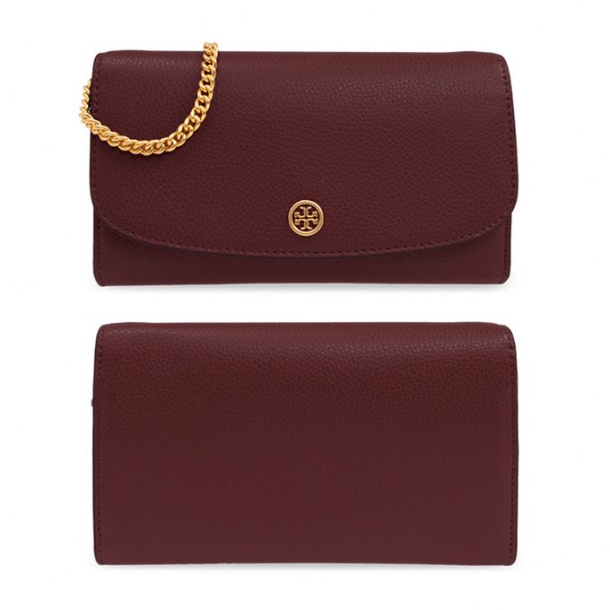 素面皮革翻蓋斜背鍊包 (酒紅)
