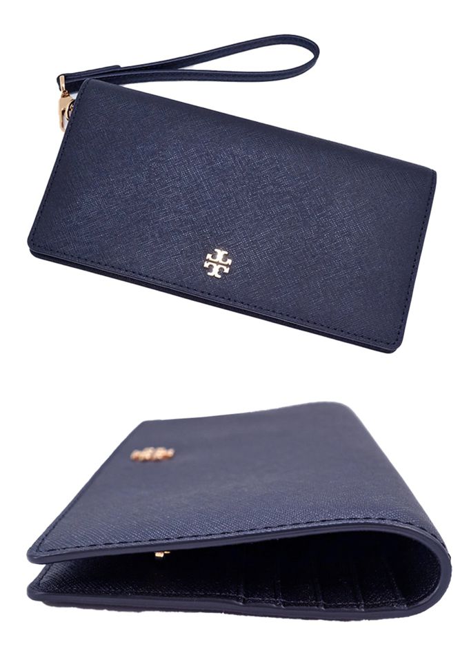 雙T-LOGO防刮皮革對開長夾 (深藍)