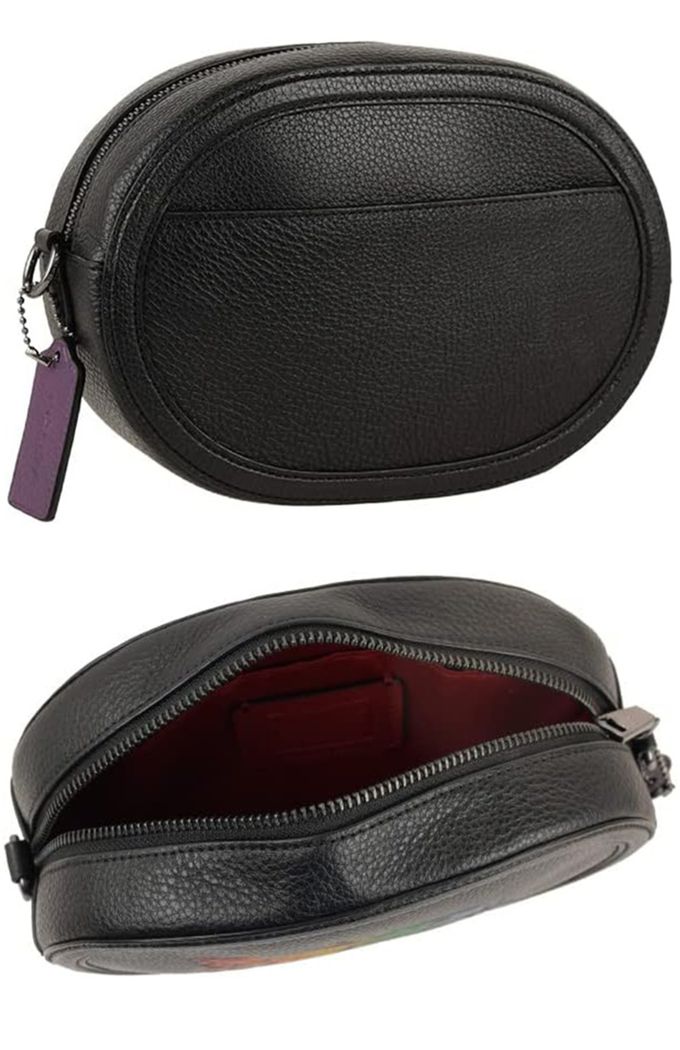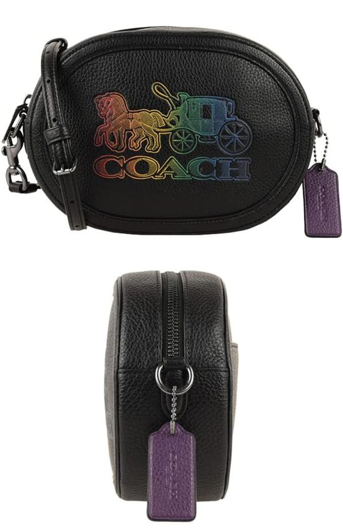 馬車LOGO皮革半圓型斜背包 (黑底彩色馬車)