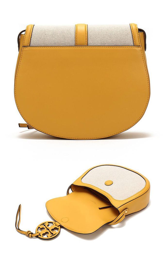 品名:帆布拼接皮革造型斜背包