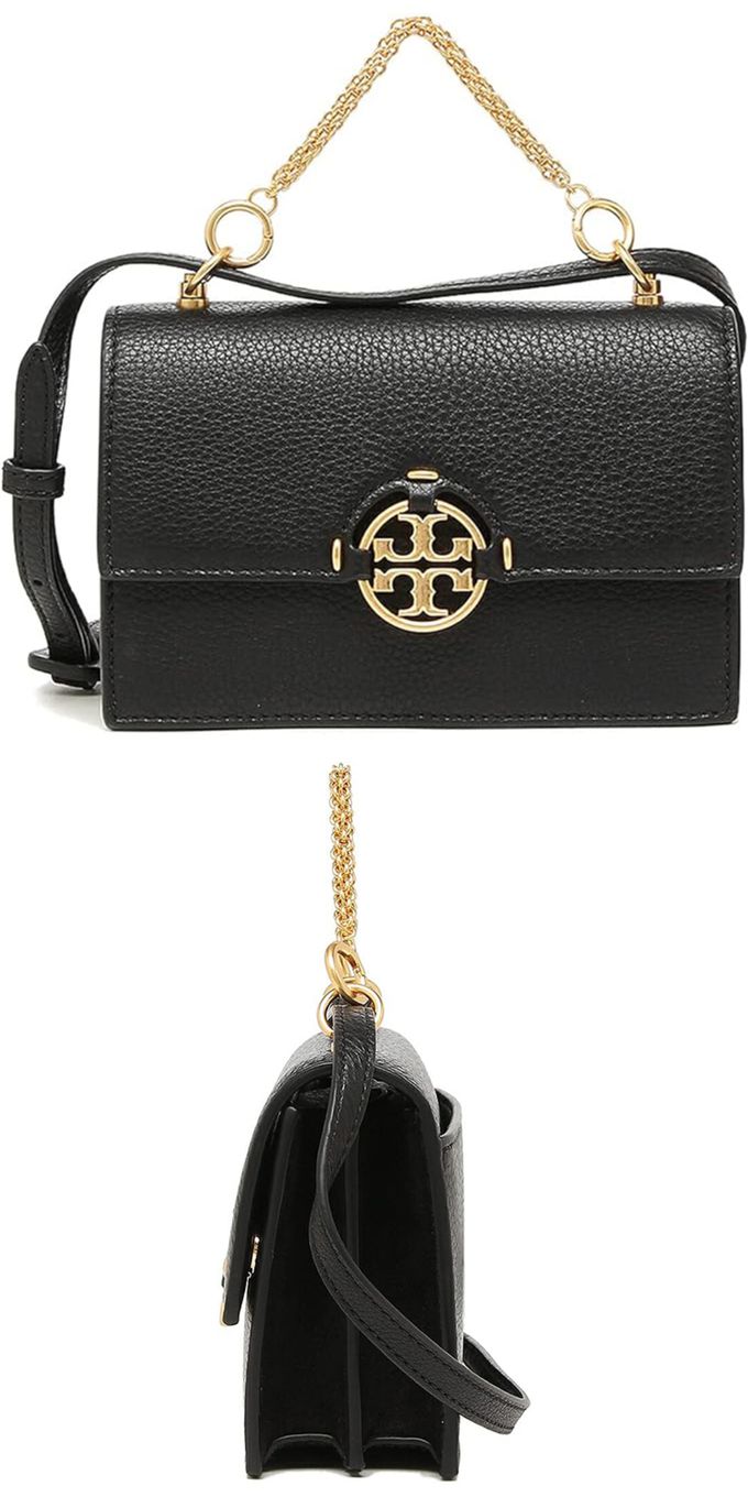 Tory Burch - 造型皮革迷你翻蓋斜背包 (黑)