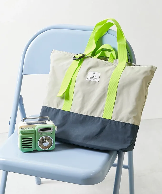 日本 devirock - 撞色輕量大方肩背上學提袋(背帶可調)-萊姆黃x淺灰 (33x42cm)