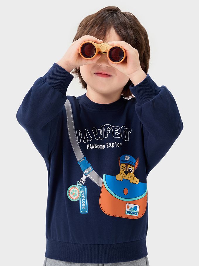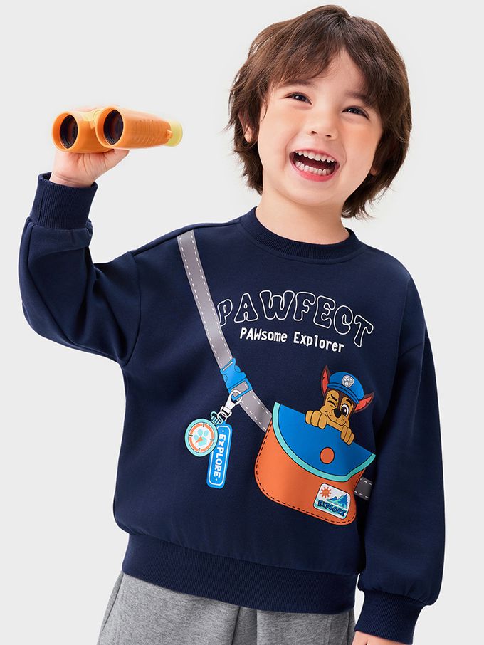卡通汪汪隊加絨半高領長袖上衣/大學T-趣味包包印花-藏青