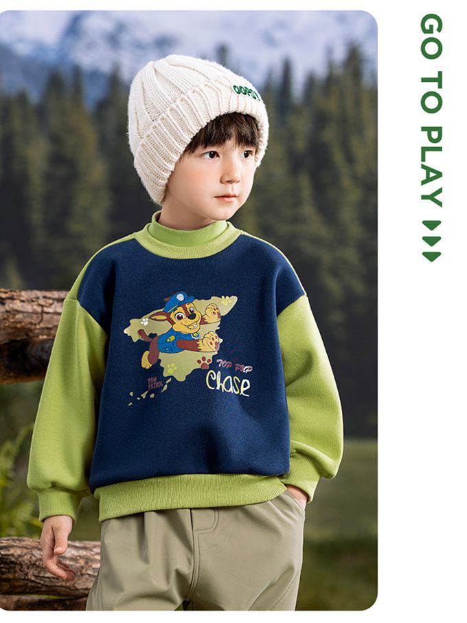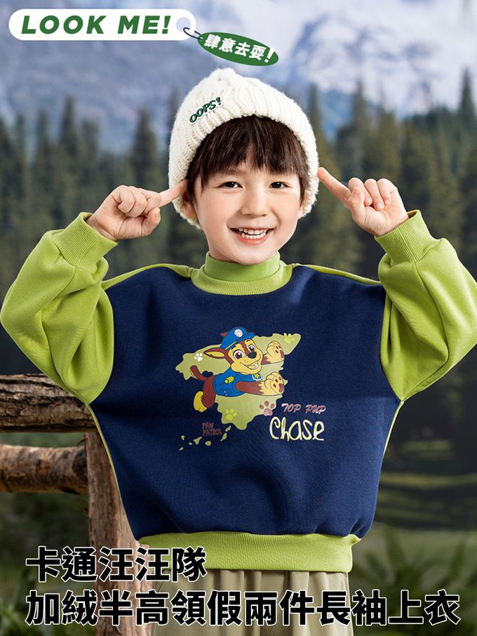 品名:卡通汪汪隊加絨半高領假兩件長袖上衣