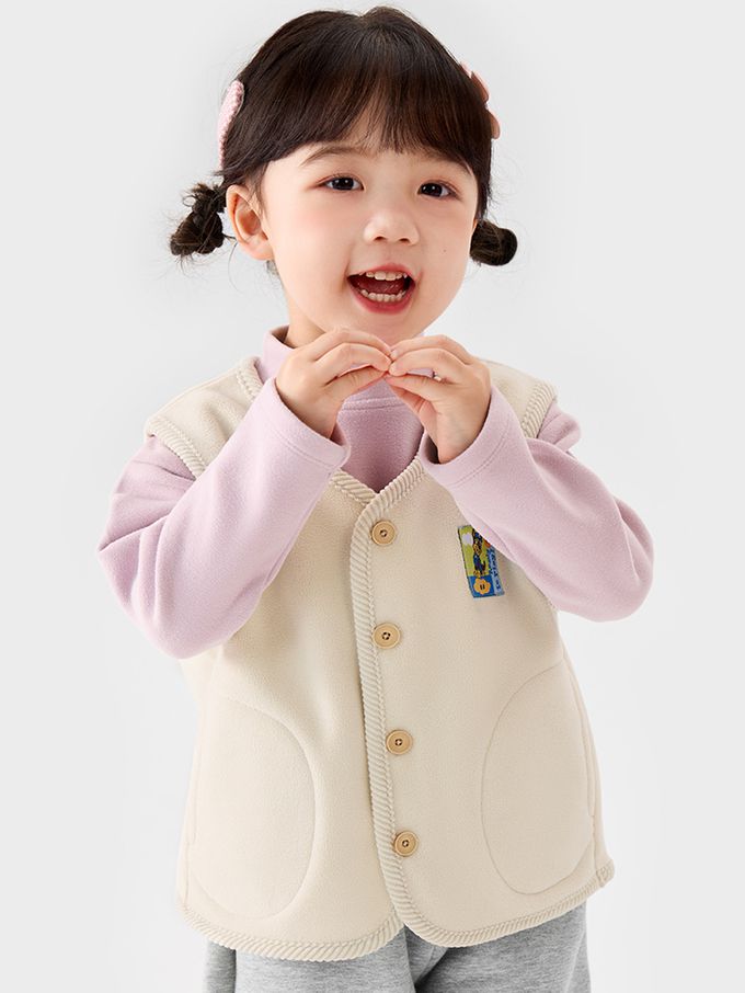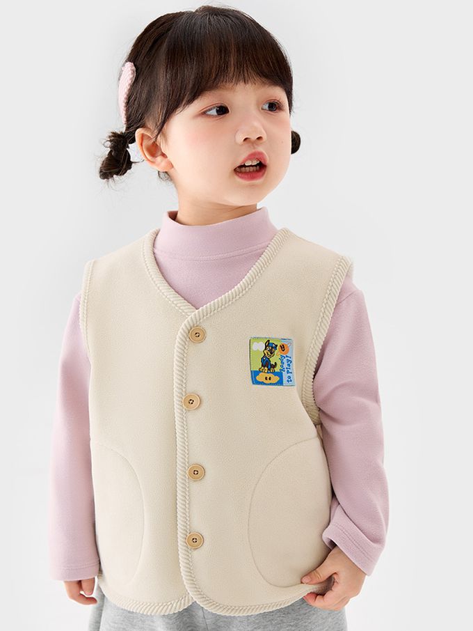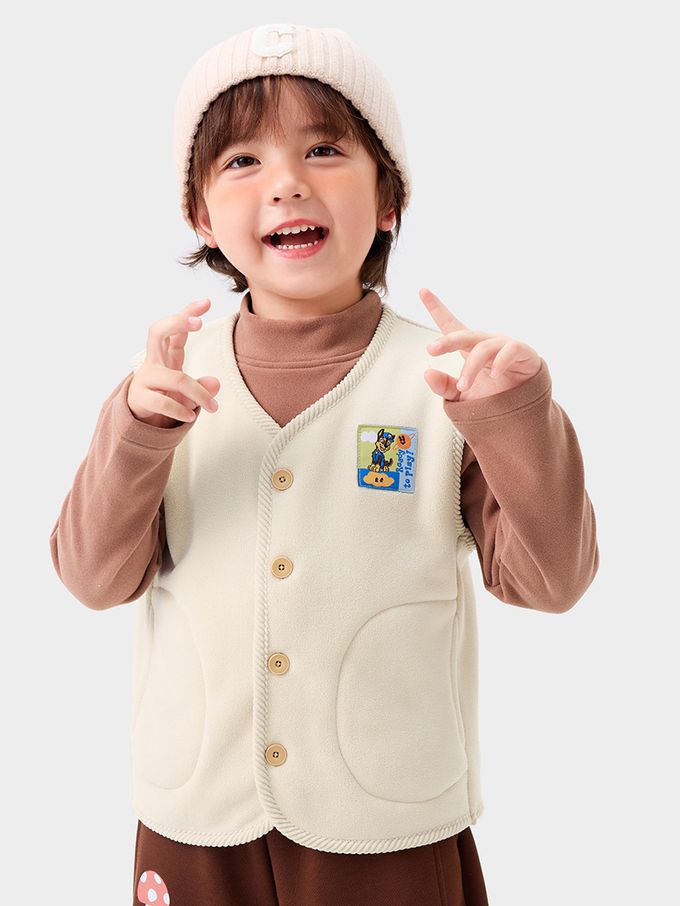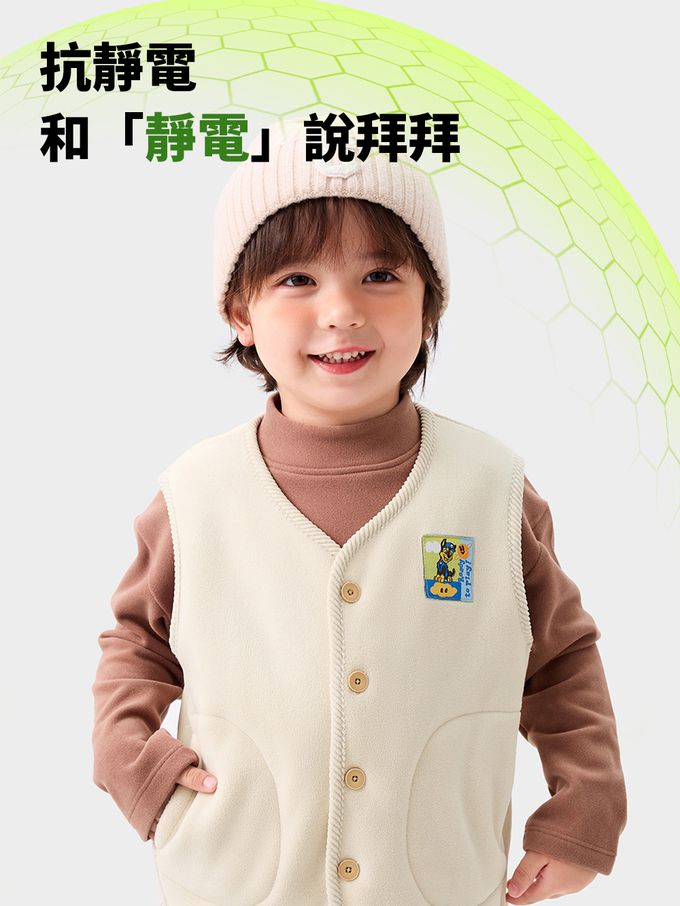 卡通汪汪隊抗靜電加絨保暖背心-卡通人物阿奇-米色