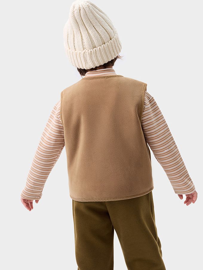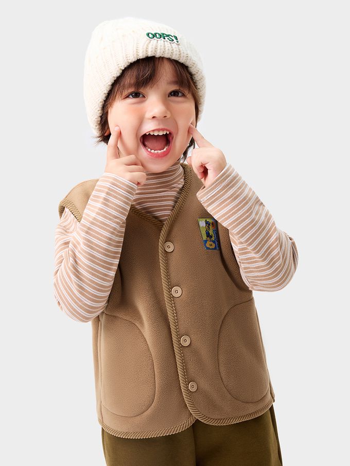 卡通汪汪隊抗靜電加絨保暖背心-卡通人物阿奇-咖色