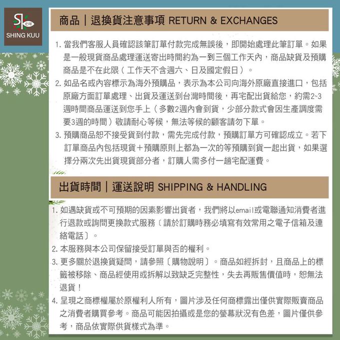運送服務:目前提供的運送僅限台灣本島。如您位於離島地區,可能會無法配送,或須依據商品需加收離島運費。廠商亦保留出貨與否的權利。離島、偏遠地區、樓層親送等加價費用,可能會另需加收。