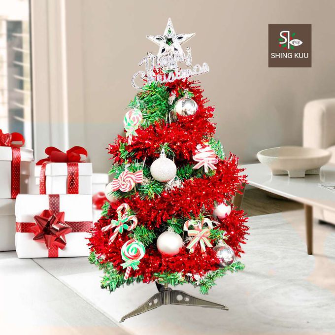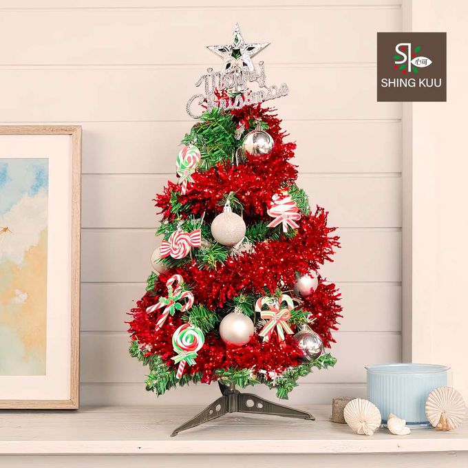 2尺60cm小美好套裝聖誕樹+3號童年快樂糖果彩繪木片飾品組_不含燈款_台灣本島免運費