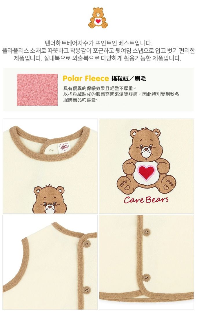 韓國 Care Bears - 聯名款大愛心熊熊後背釦搖粒絨背心-米