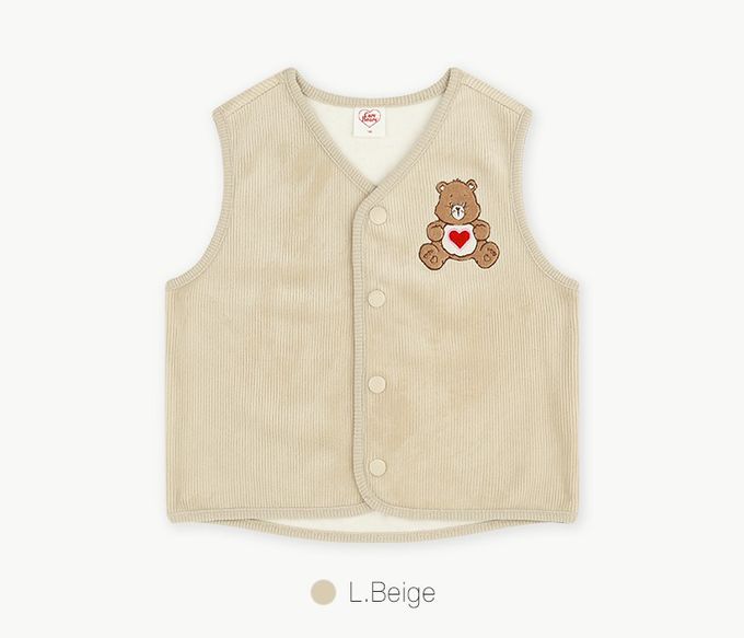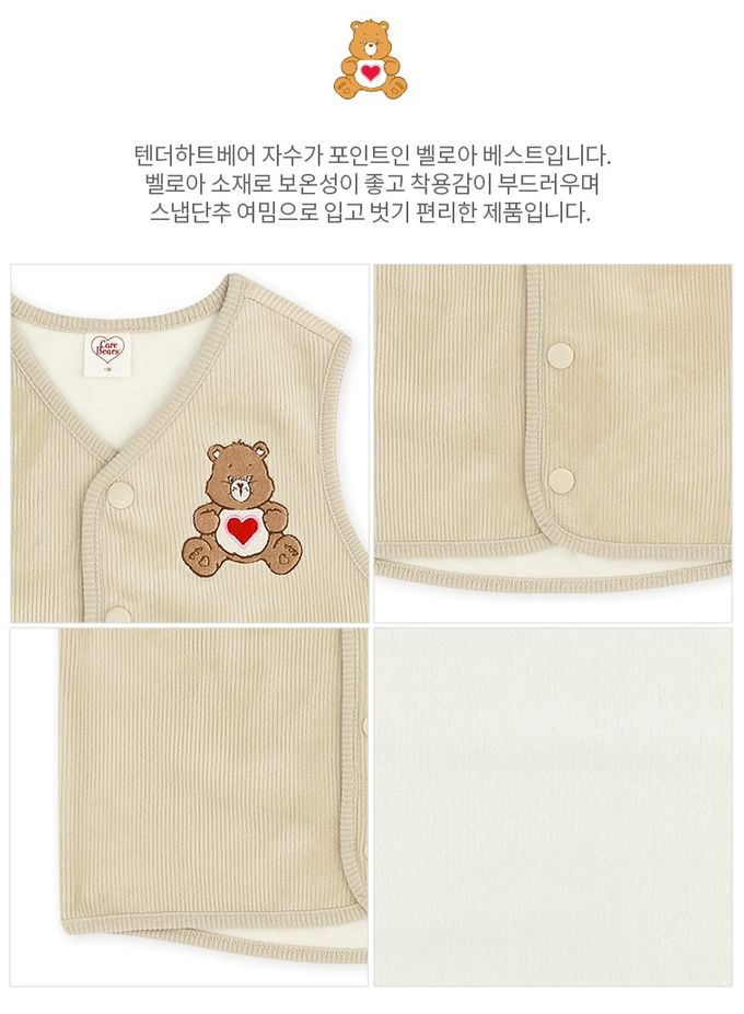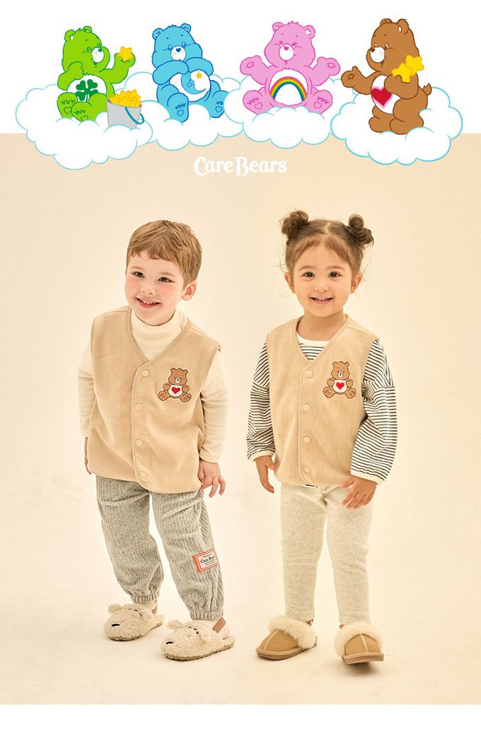 韓國 Care Bears - 聯名款愛心熊溫暖天鵝絨V字背心-奶茶