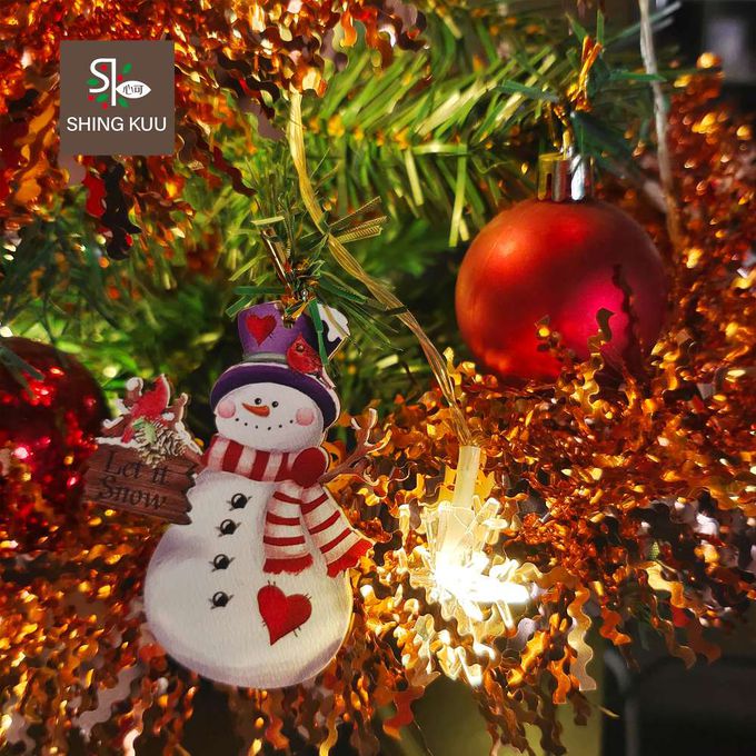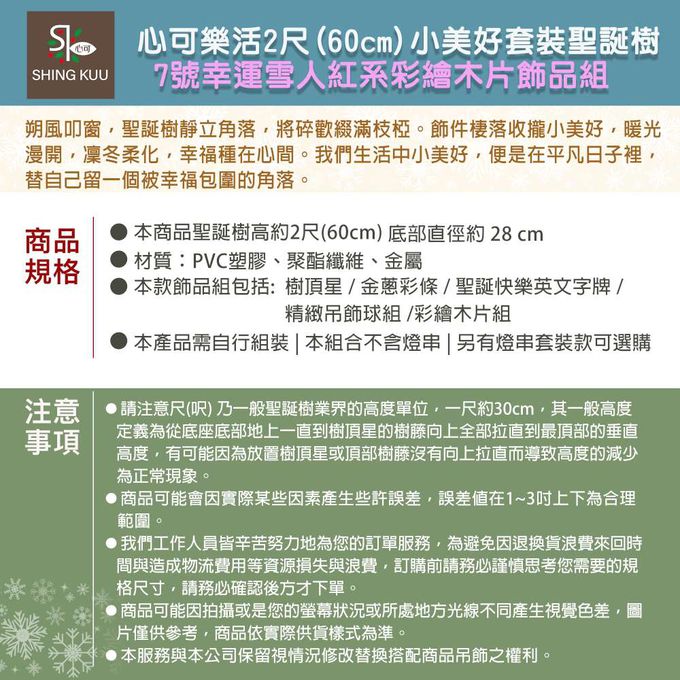2尺60cm小美好套裝聖誕樹+7號幸運雪人紅系彩繪木片飾品組+LED暖白光20燈雪花燈串_台灣本島免運費