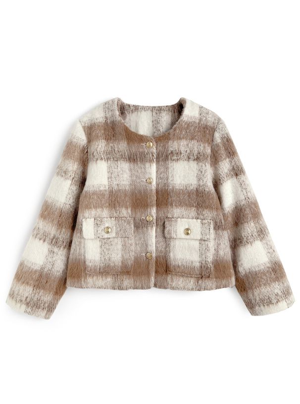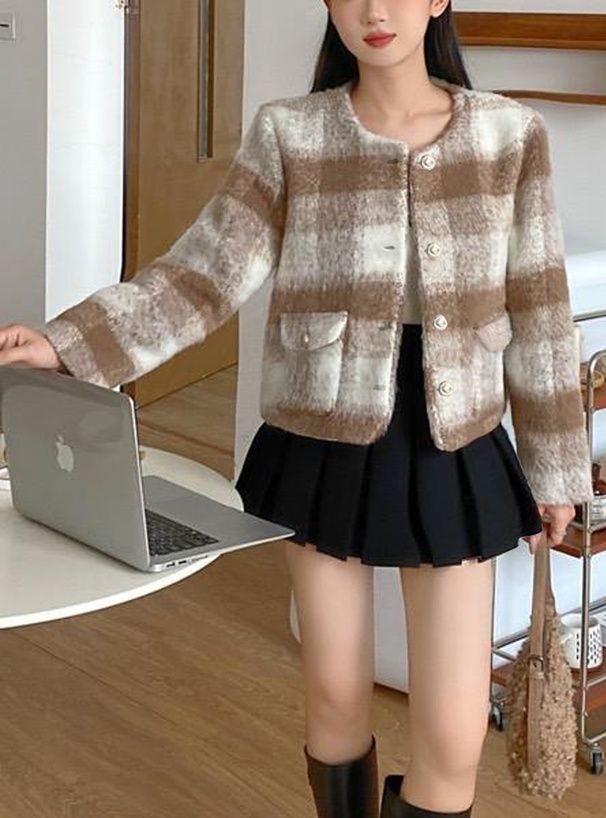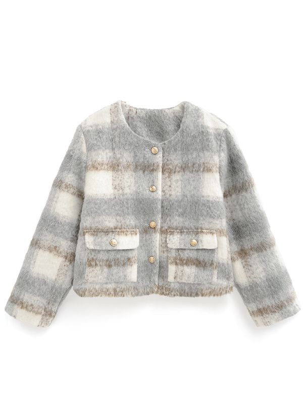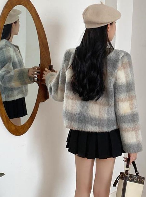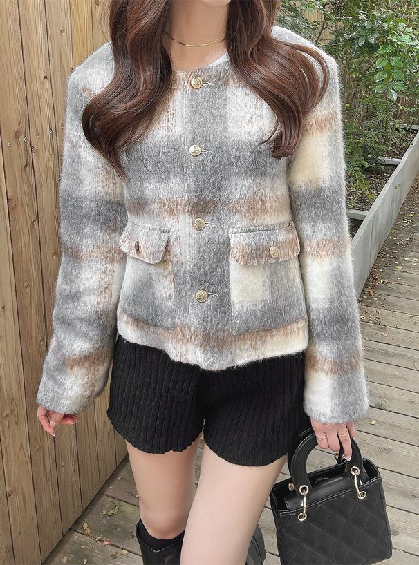 • 採用質感柔和的長絨材質,搭配格紋設計