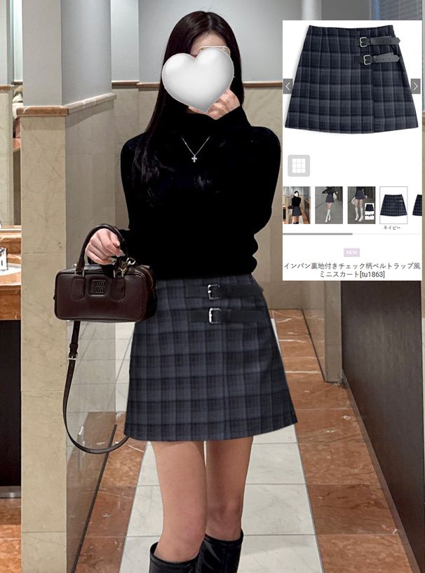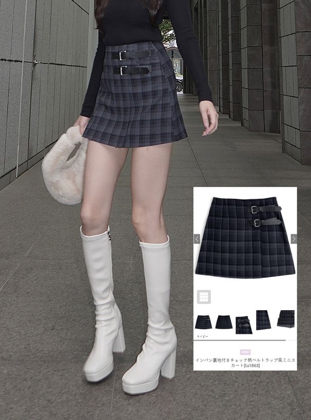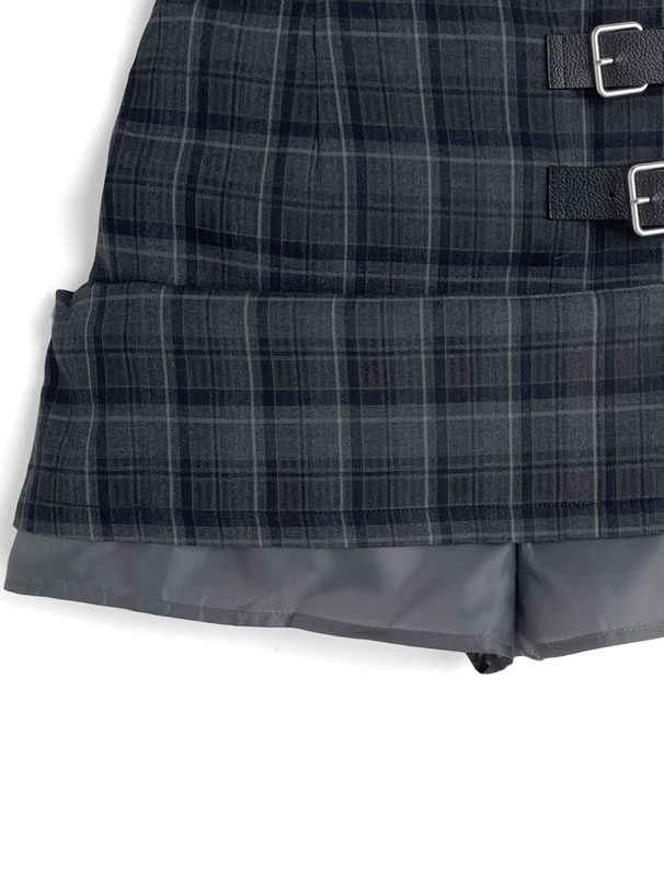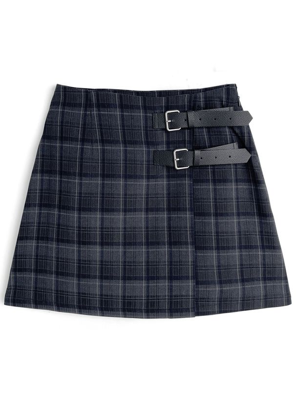 • 品名:腰帶裝飾俏麗格紋短裙(內有襯褲)