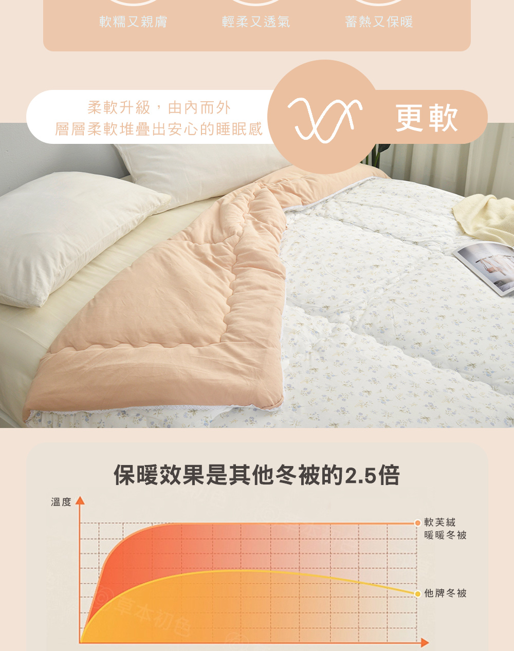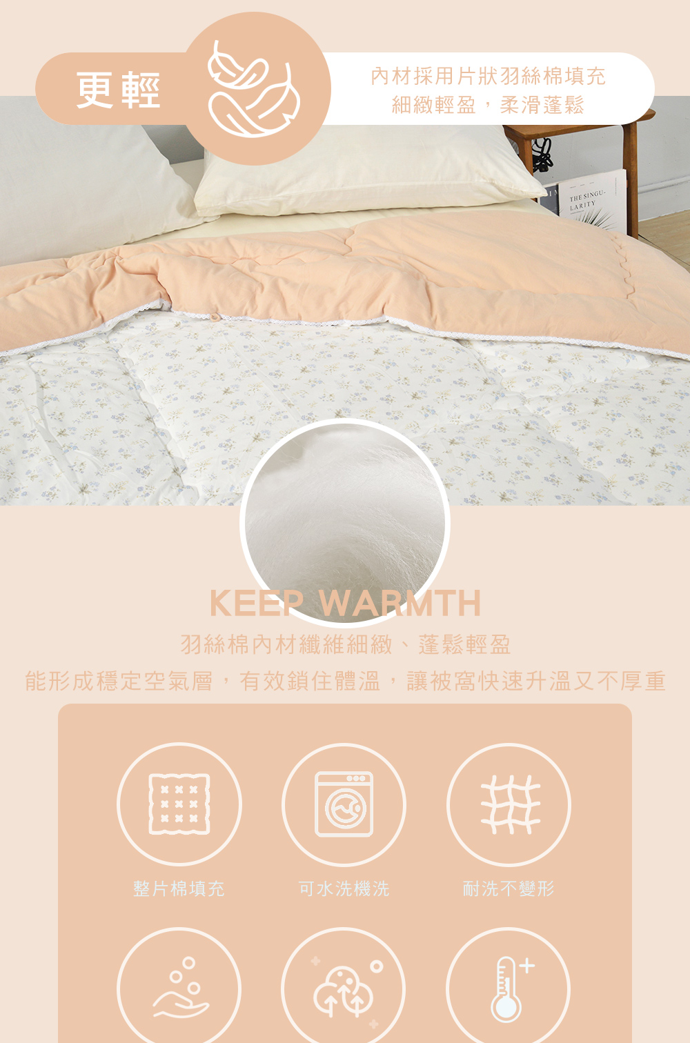 ◎材質:表布/底布-100%聚酯纖維(軟芙絨)/內材-100%聚酯纖維(片狀羽絲絨)
