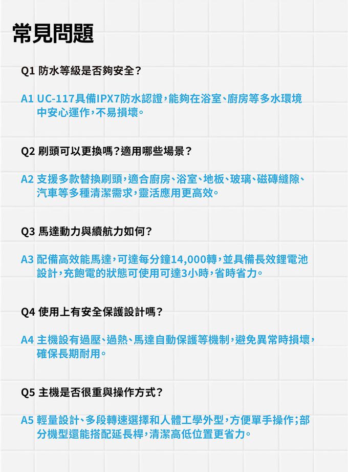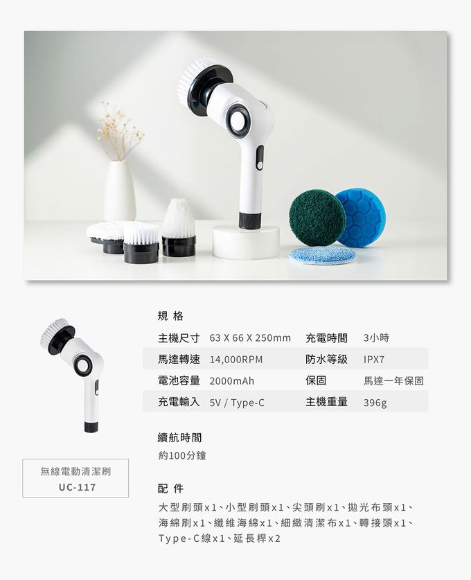 無線電動清潔刷│7款刷頭・廚房浴廁玻璃地板汽車皆適用-UC-117