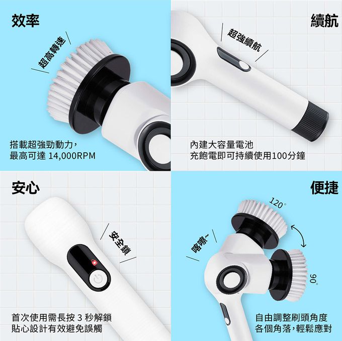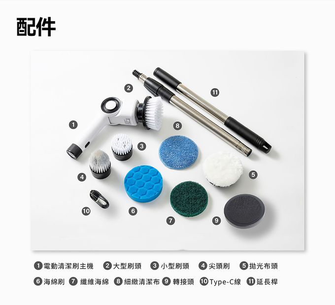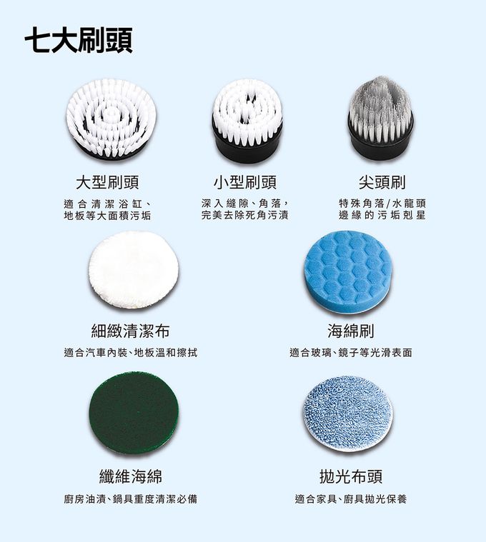 品名:無線電動清潔刷│7款刷頭・廚房浴廁玻璃地板汽車皆適用