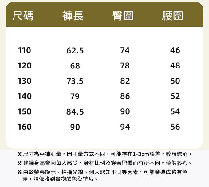 110cm、120cm、130cm、140cm、150cm、160cm