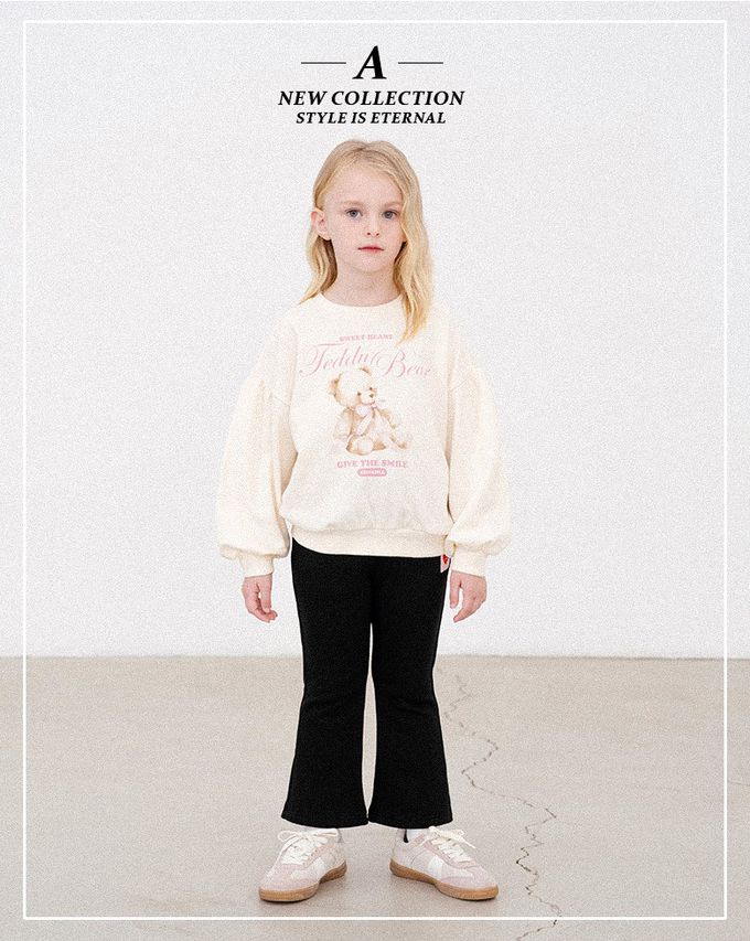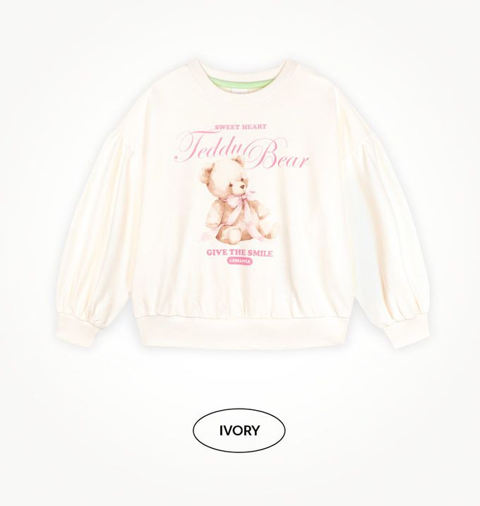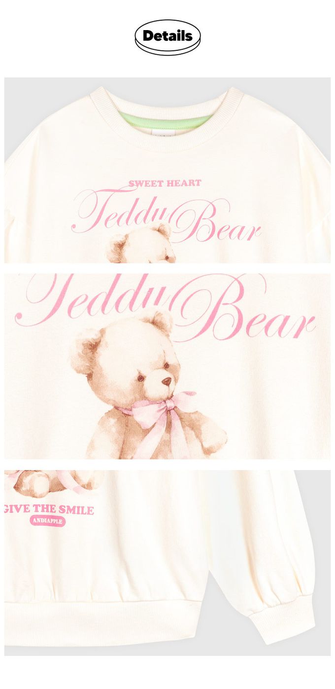 韓國 AndiApple - 可愛泰迪熊熊長袖大學T-象牙白