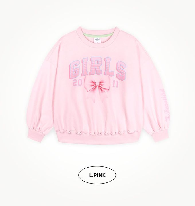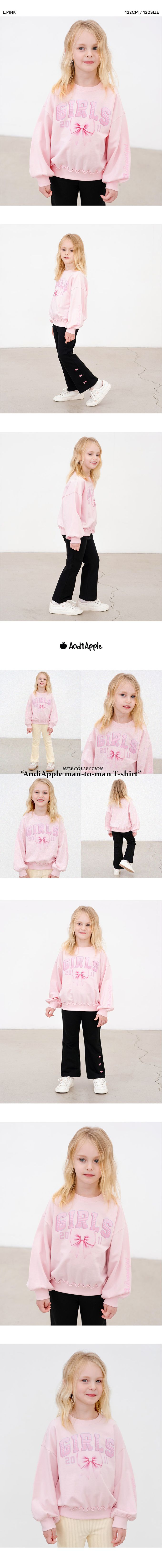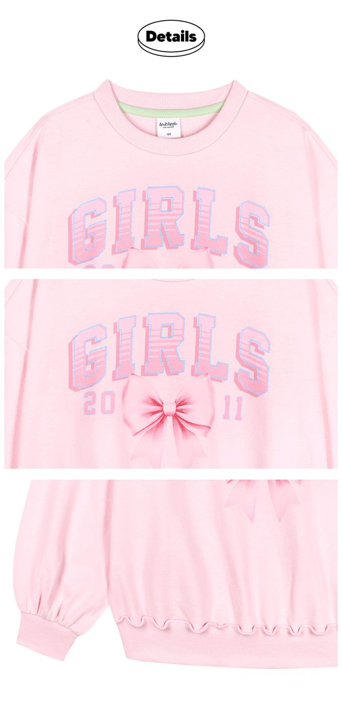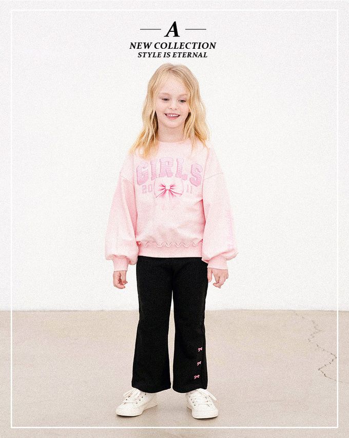 韓國 AndiApple - GIRLS蝴蝶結圖案長袖大學T-淡粉