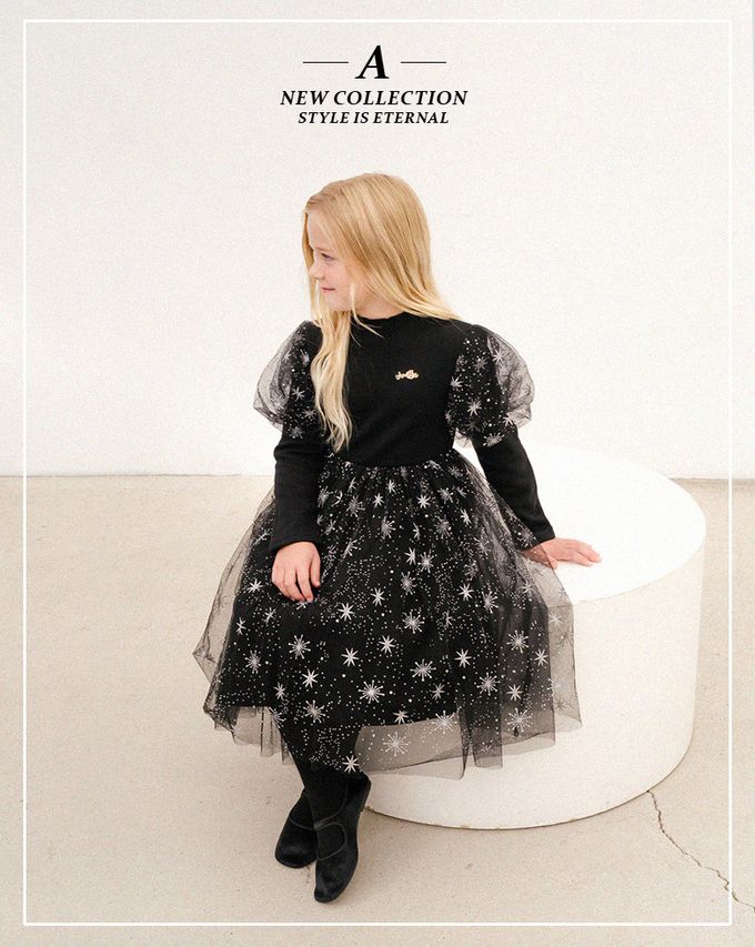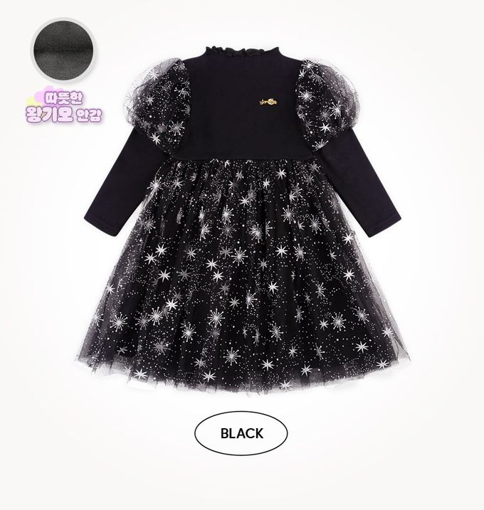韓國 AndiApple - 神秘星銀內刷毛公主紗裙洋裝-黑