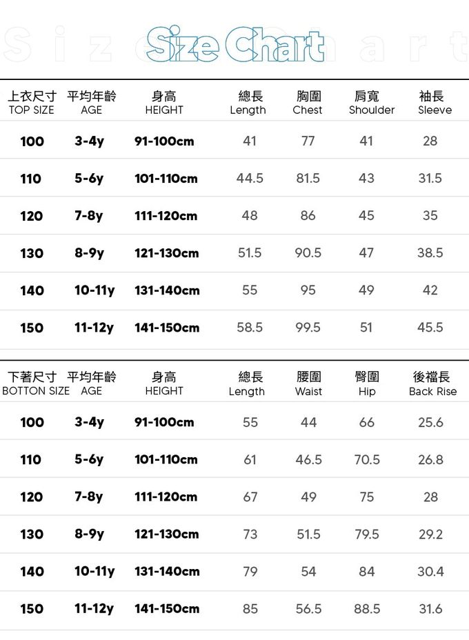 1. 尺寸表單位皆為公分(cm),實際尺寸會因布料彈性、水洗、測量起迄點等因素略有誤差。建議參考孩子平時穿著衣物尺寸進行選購。2. 建議以30度以下冷水,單獨手洗,以免造成移染或掉色。3. 如需機洗,請務必將衣服翻面放入洗衣網、再放洗衣機,以免刮損圖樣。(若有標註不可機洗或乾洗,請勿機洗、乾洗)4. 若含牛仔布、有色布料容易互相染色,請分開或單獨洗滌,以免相互移染。請使用中性洗劑。浸泡時間不宜過長。5. 請勿使用漂白劑、螢光增白劑及衣物柔軟劑,以免破壞布料或導致掉色。6. 洗滌後立刻晾乾,切勿使用烘衣機。過分烘乾可能會破壞織物纖維、導致衣物收縮。7. 如有熨燙需求,請低溫熨燙。8. 每件商品於拍攝時均力求忠實呈現,但因每台電腦、手機或平板等設備之螢幕亮度、解析度不同,可能會有些許色差,謝謝媽咪爸比們的體諒。