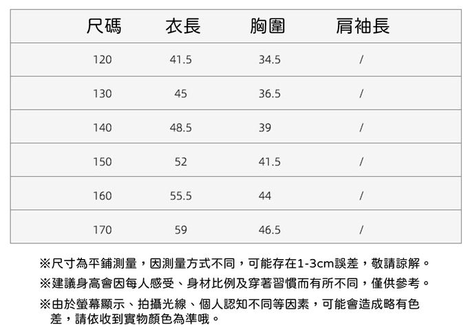 120cm、130cm、140cm、150cm、160cm、170cm