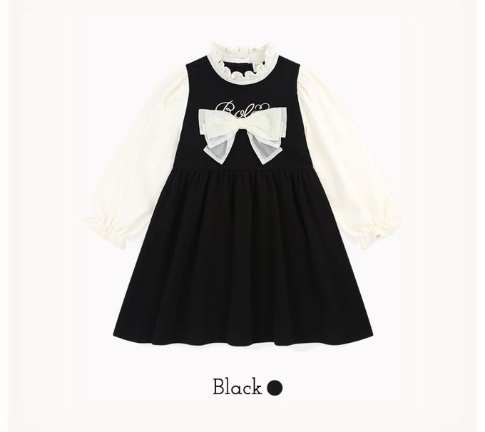 韓國 HEJMINI - (內刷毛)優雅小淑女假兩件洋裝-白X黑