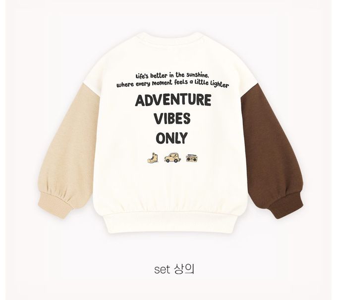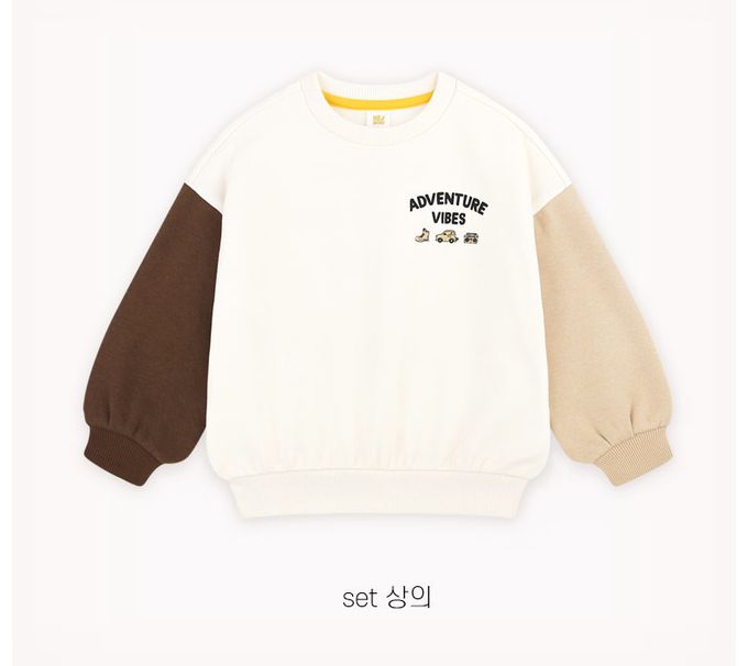 韓國 HEJMINI - (內刷毛)文字圖案拼色長袖套裝-米X杏X咖啡