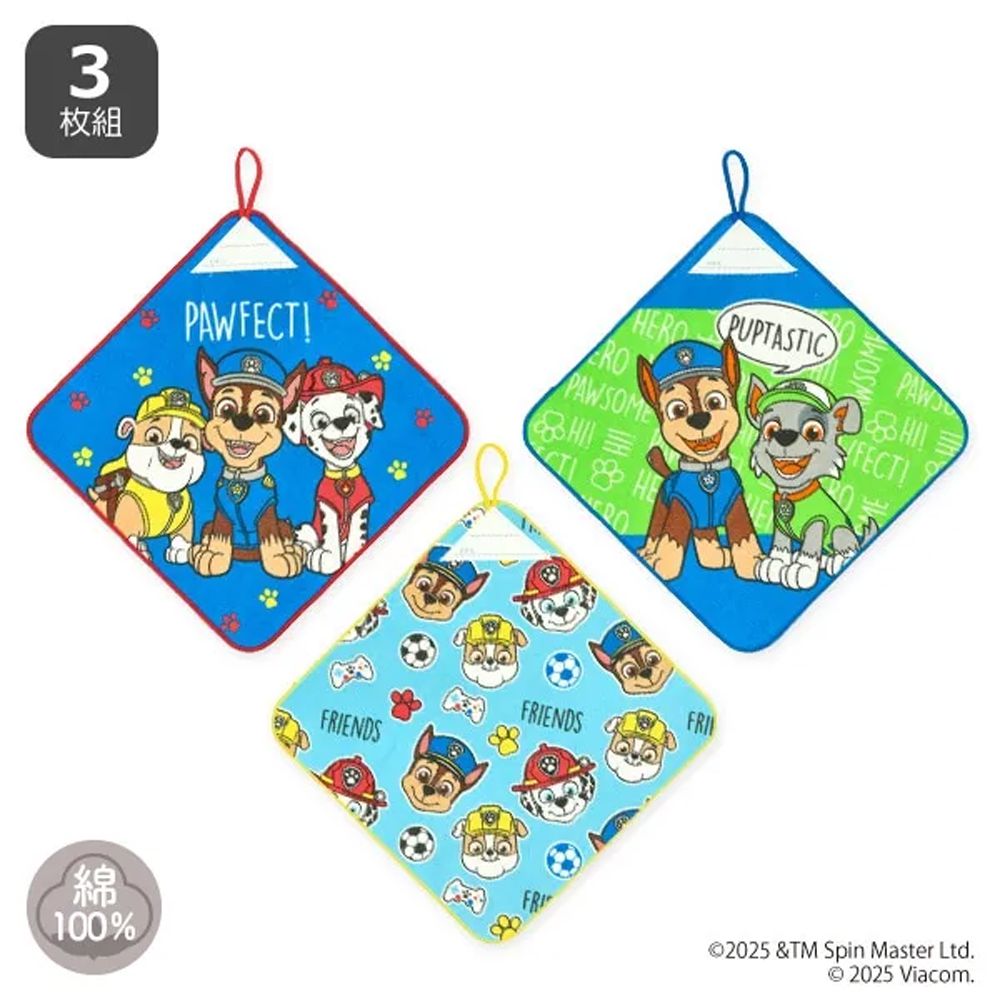 日本西松屋 - 純棉可吊掛上學擦手巾/手帕(3入組)-卡通人物汪汪隊-藍 (27×27cm)