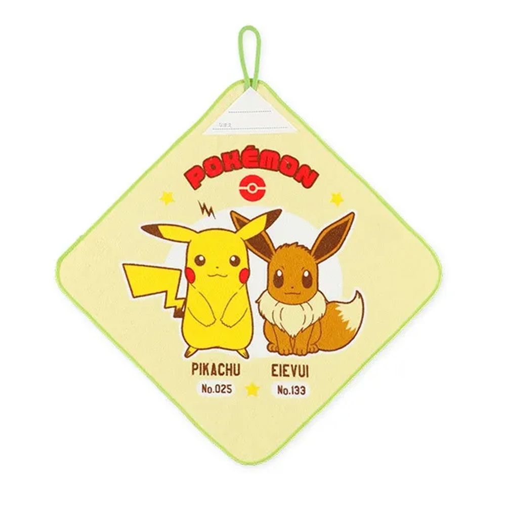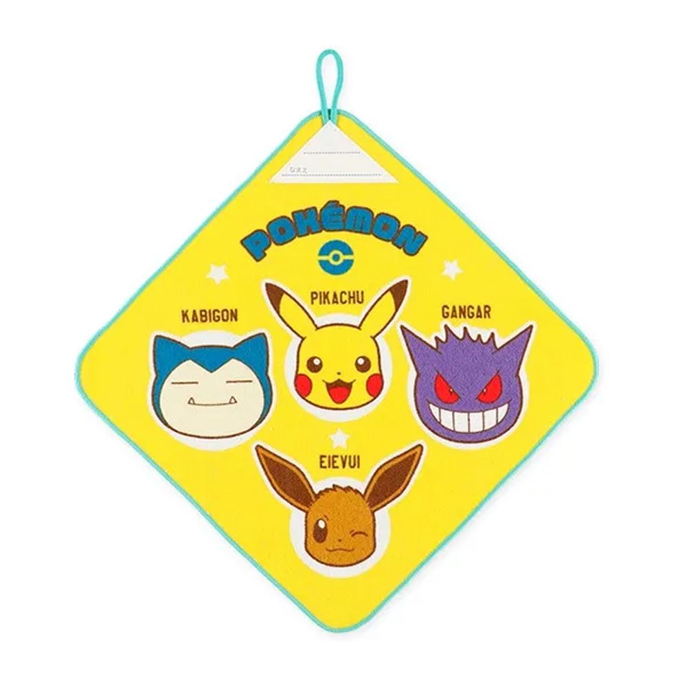 日本西松屋 - 純棉可吊掛上學擦手巾/手帕(3入組)-卡通人物寶可夢-黃&藍 (27×27cm)