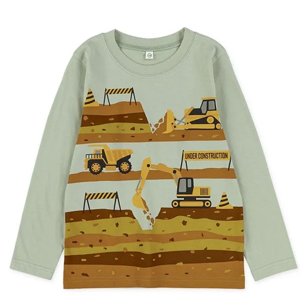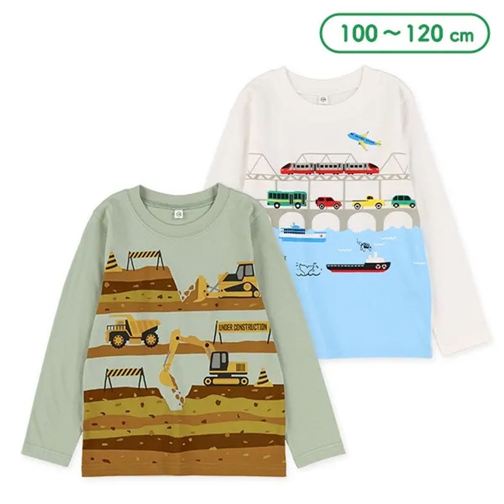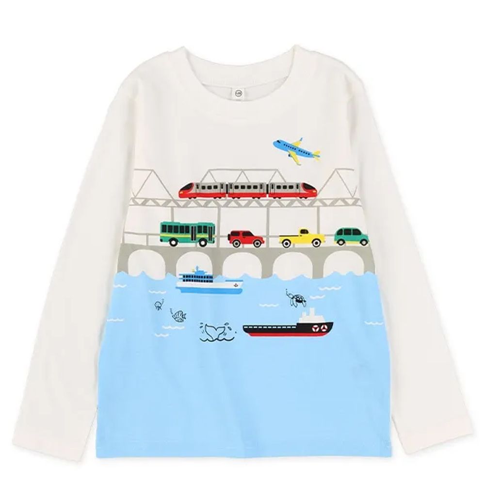 日本西松屋 - 工作車風景印花長袖上衣-白
