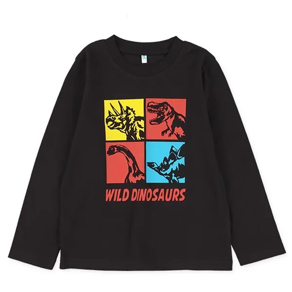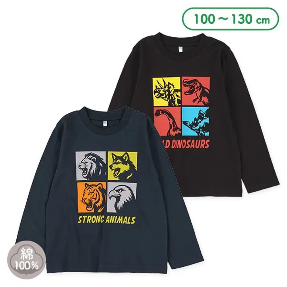 日本西松屋 - 100%棉 帥氣動物印花長袖上衣-猛獸-海軍藍