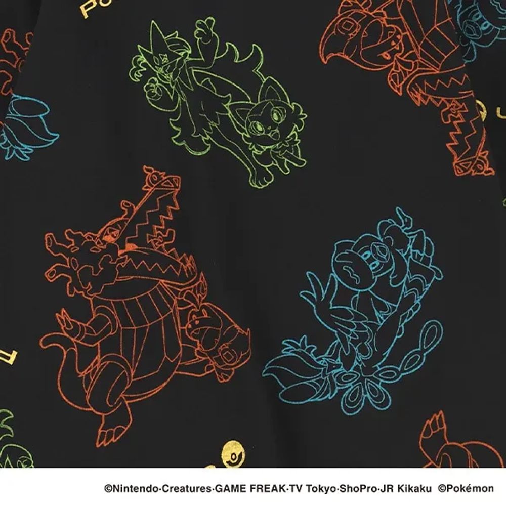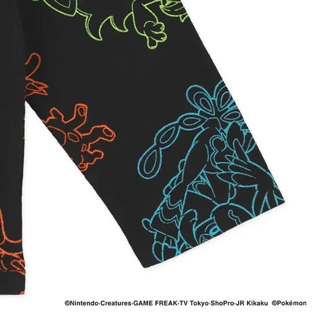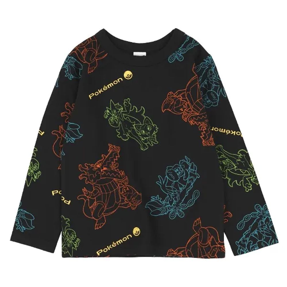 日本西松屋 - 卡通人物寶可夢印花長袖上衣-彩色線條-黑